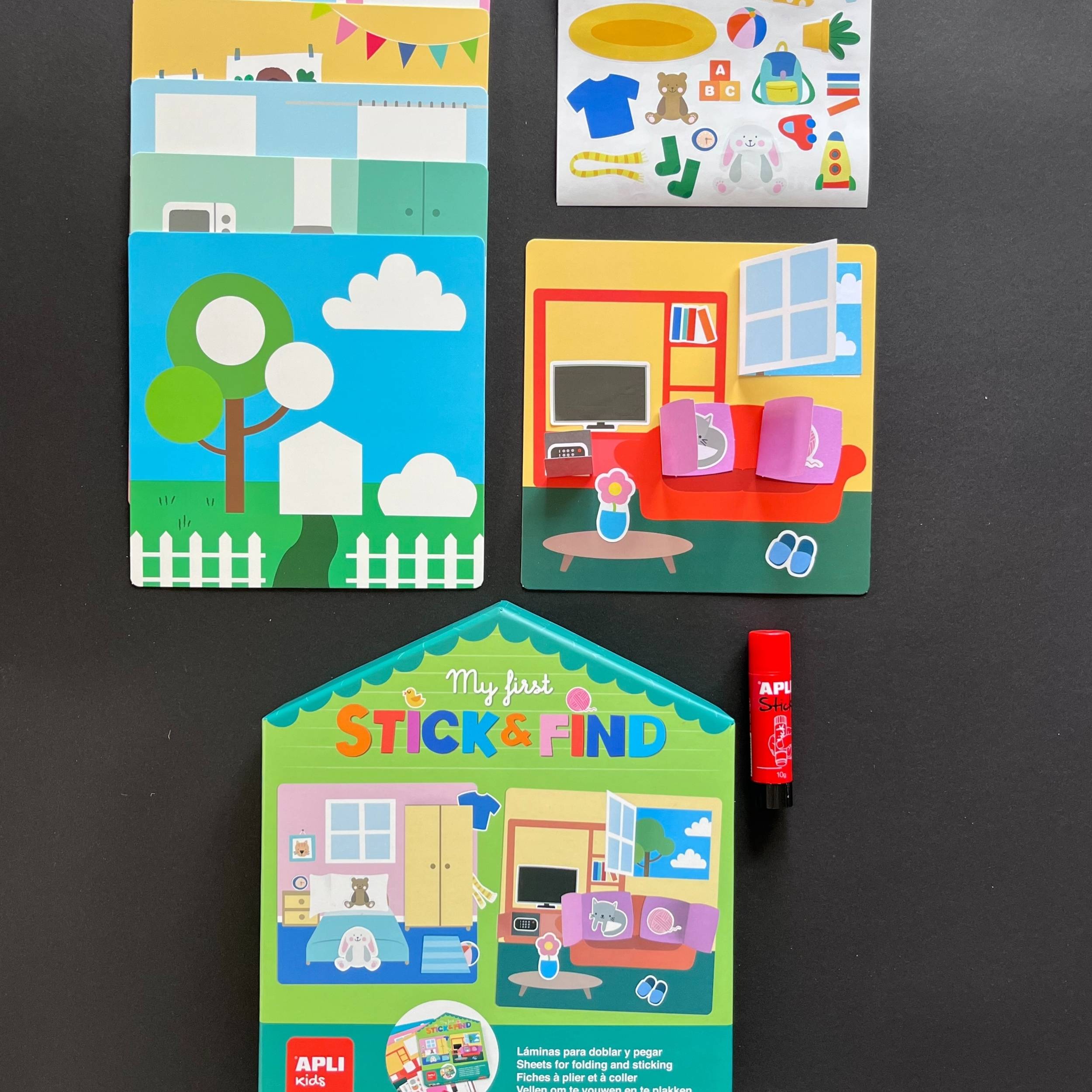- im Set enthalten: 6 illustrierte Karten, 5 Bögen mit ausgeschnittenen Elementen, 2 Bögen mit Aufklebern, Klebestift mit 20 g und ein Heft mit Anleitungen und Beispielen;