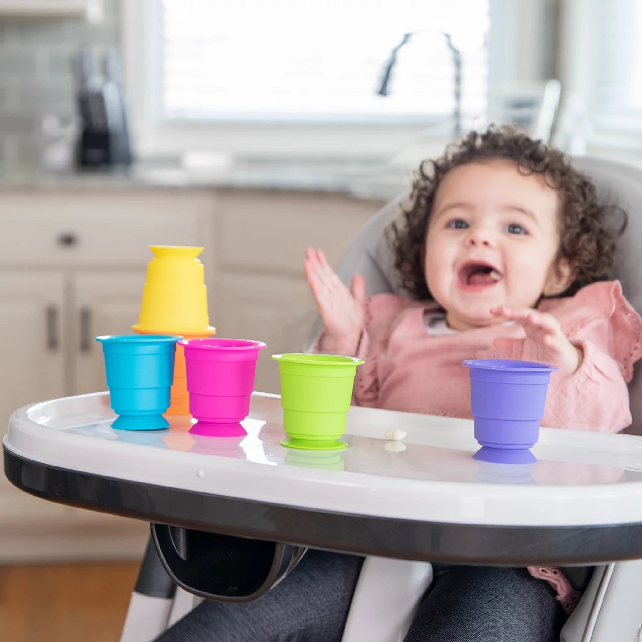 Ob Ihr Kind einen beeindruckenden Turm auf dem Spiegel bauen, ein buntes Muster auf dem Fenster gestalten oder die Kühlschranktür dekorieren möchte - die Cups sind bereit für kreatives Spielen! Sie können auch als Badespielzeug verwendet werden, z.B. zum Ausgießen von Wasser. Dank des sicheren und ungiftigen Silikonmaterials können die Becher auch bedenkenlos zum Trinken und Essen verwendet werden.