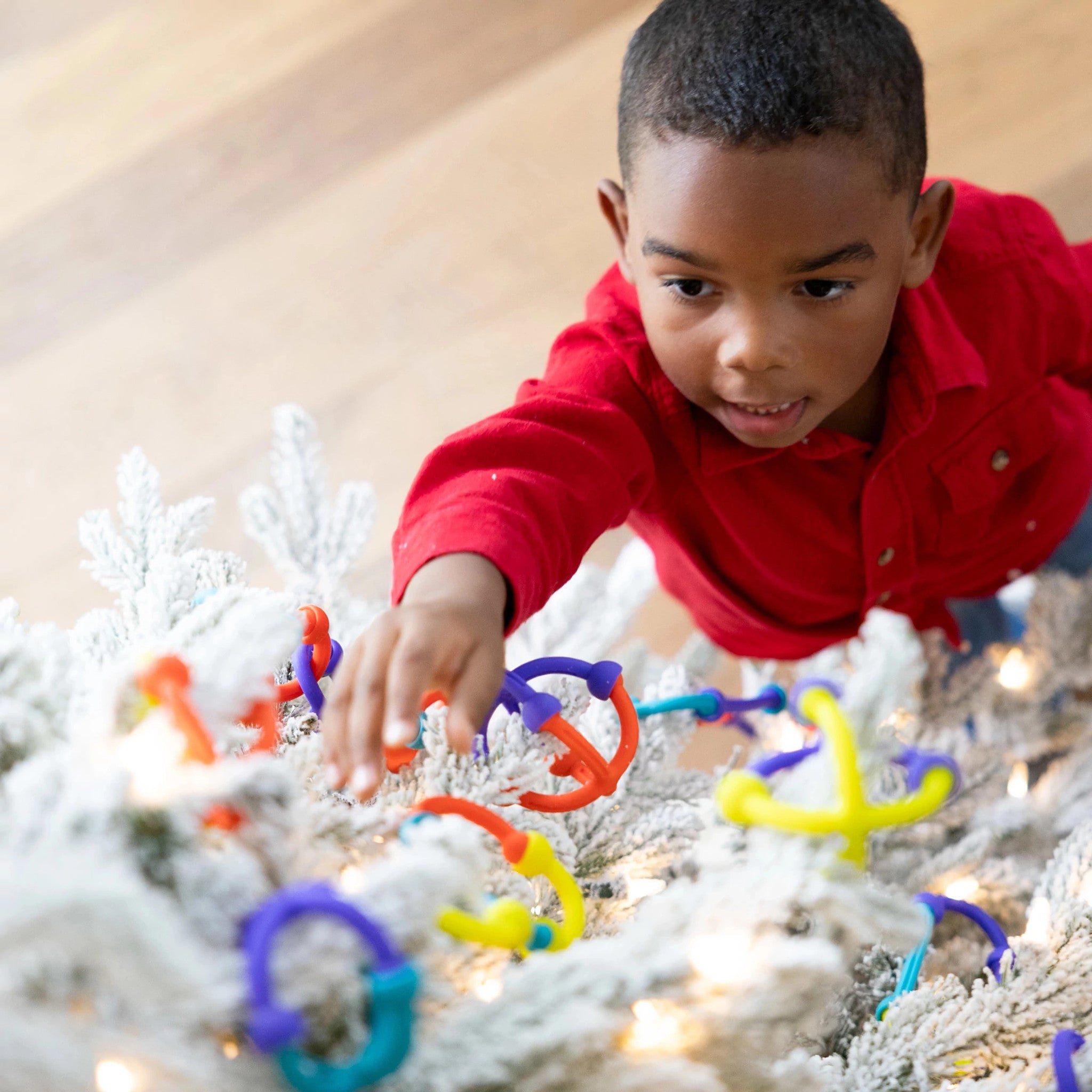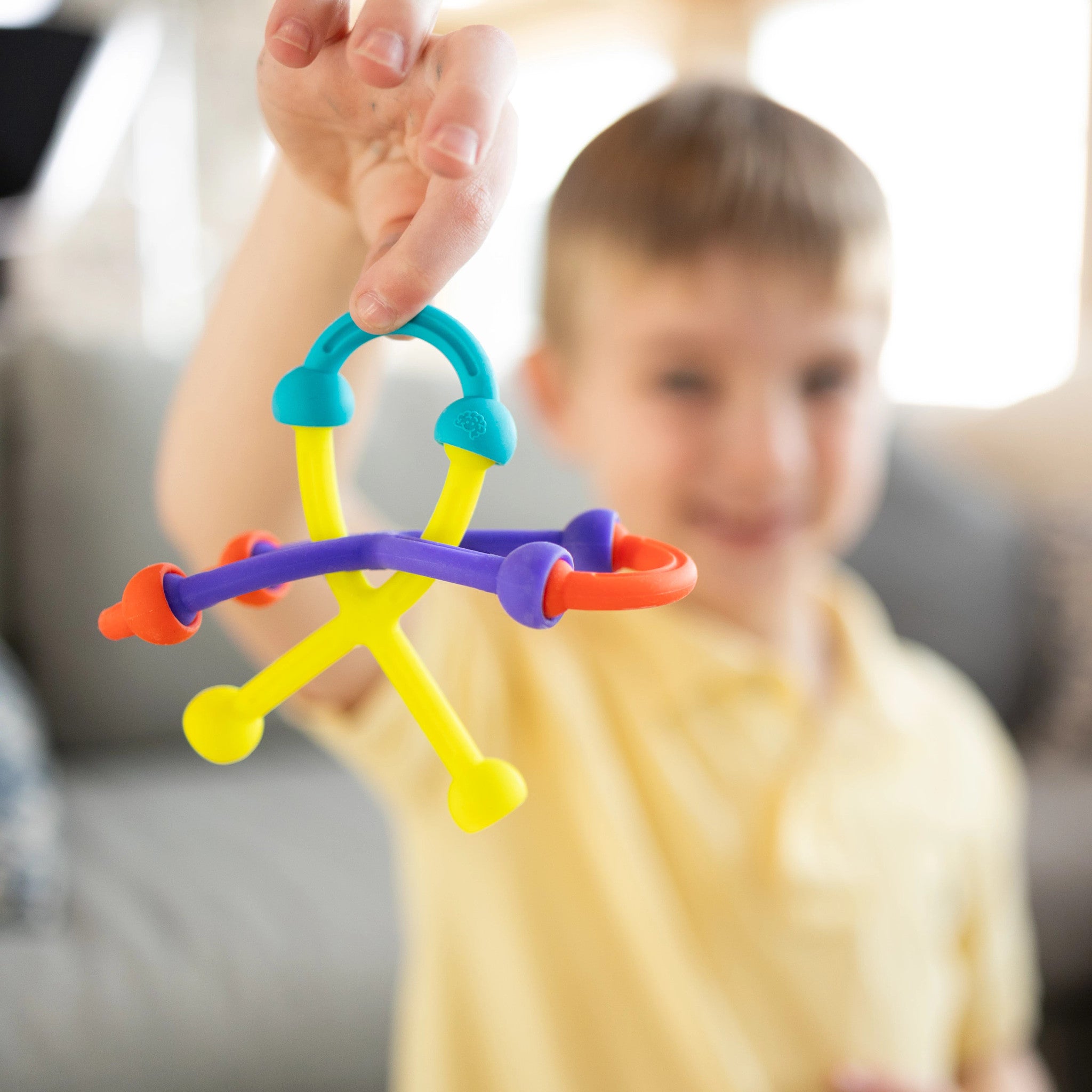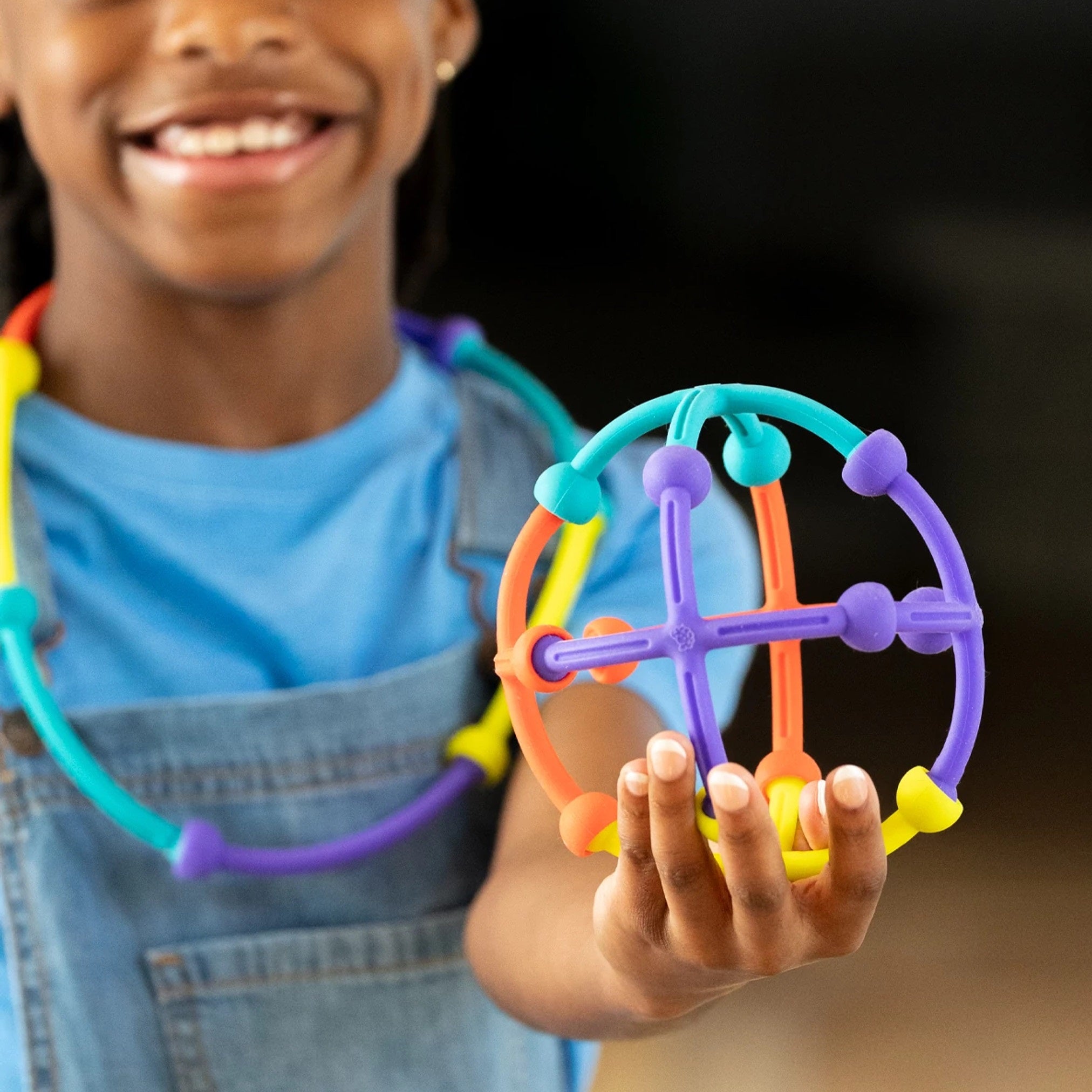 Silikonklötze mit innovativen Kugelverbindungen die den Bau einer unendlichen Anzahl von erstaunlichen Konstruktionen ermöglichen. Trennen Sie sie, um ein lustiges Knackgeräusch zu hören!