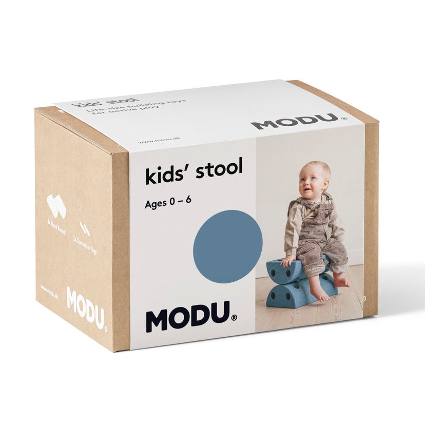MODU - Kids Stool - gibt Ihnen die Möglichkeit, vom Spielen auf dem Bauch für ein Kleinkind bis zum Üben des Gleichgewichts für ein größeres Kind oder zum Schaukeln von einer Seite zur anderen. Sie können den Hocker mit anderen MODU-Blöcken kombinieren, um eine "Seilüberquerung" oder einen lustigen Hindernisparcours zu schaffen oder alles andere, was Ihre Fantasie hergibt!
