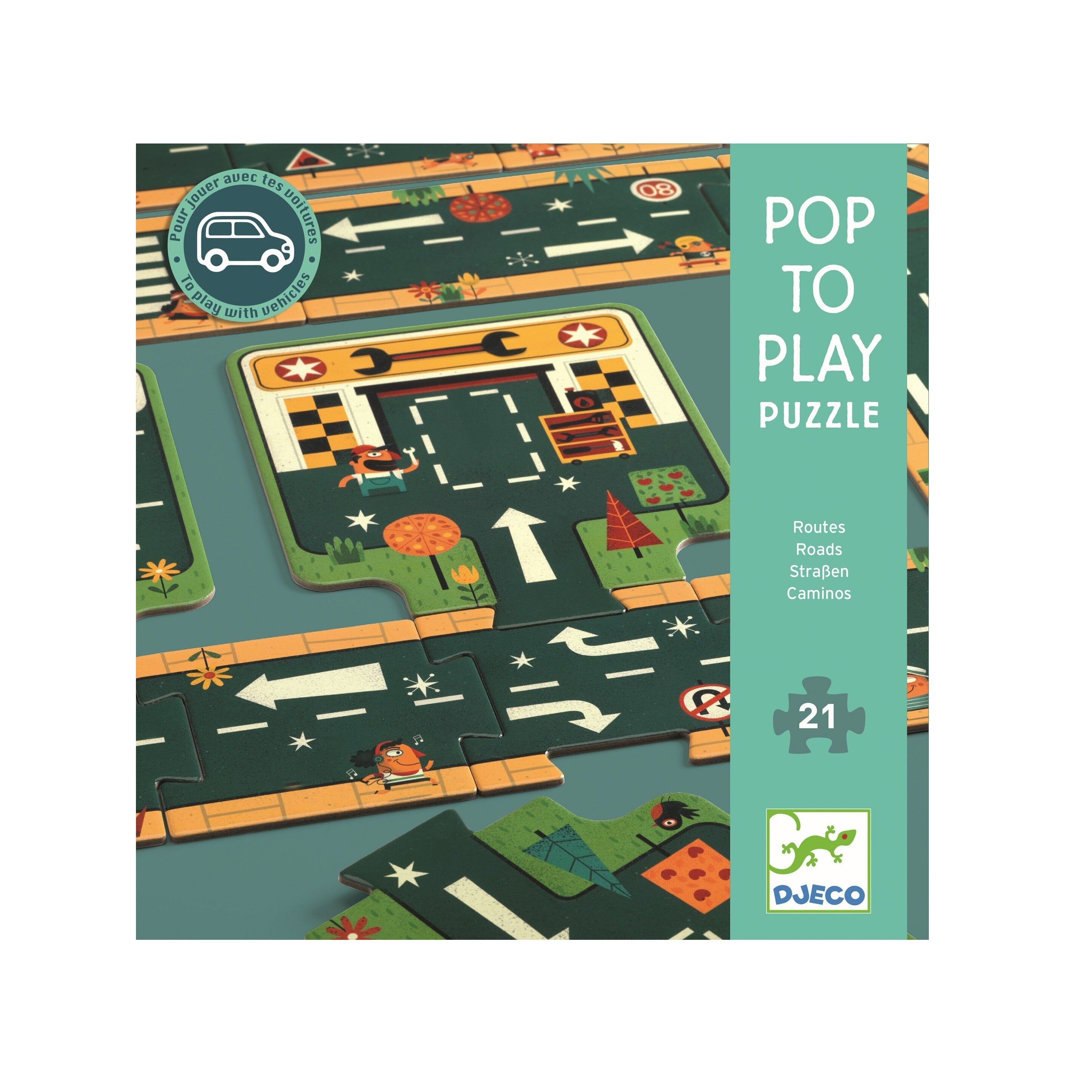Großes 21-teiliges Kartonpuzzle für Kinder. Leicht zusammenzusetzen, fördert die Fantasie. Es lassen sich 3 verschiedene Straßenmuster zusammenstellen. Das Puzzle kann als Hintergrund für Geschichten mit Autos, Figuren und Tieren dienen.