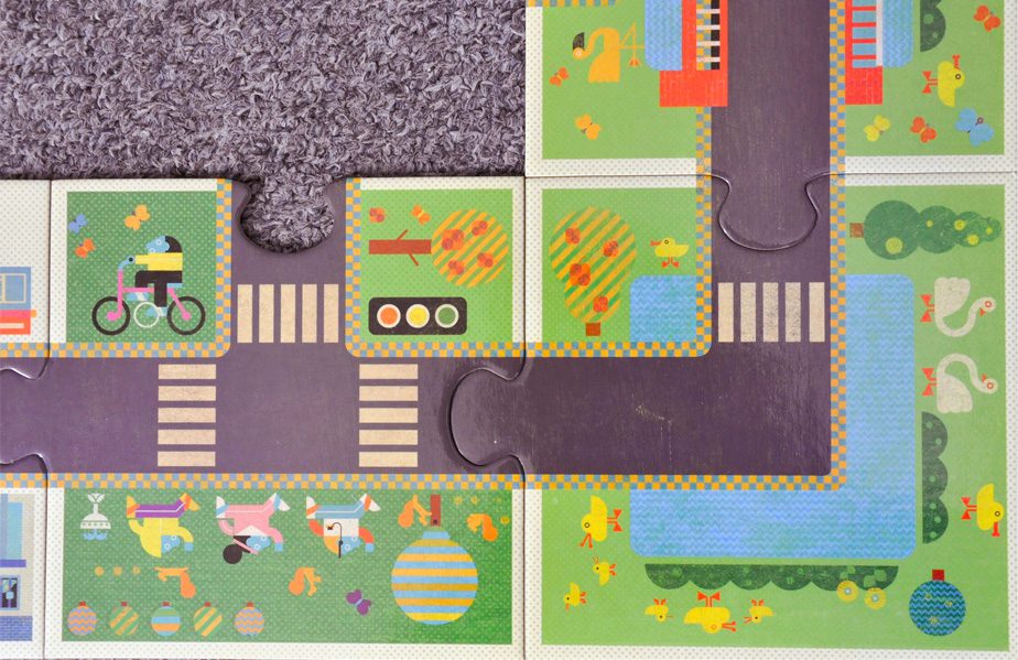 Riesige Puzzles, die Straßen mit 3D-Verkehrszeichen darstellen, sind ein großer Spaß für Kinder ab 3 Jahren, um Verkehrsregeln zu beobachten und zu lernen. Das Set enthält 24 Puzzles + 5 Verkehrsschilder.