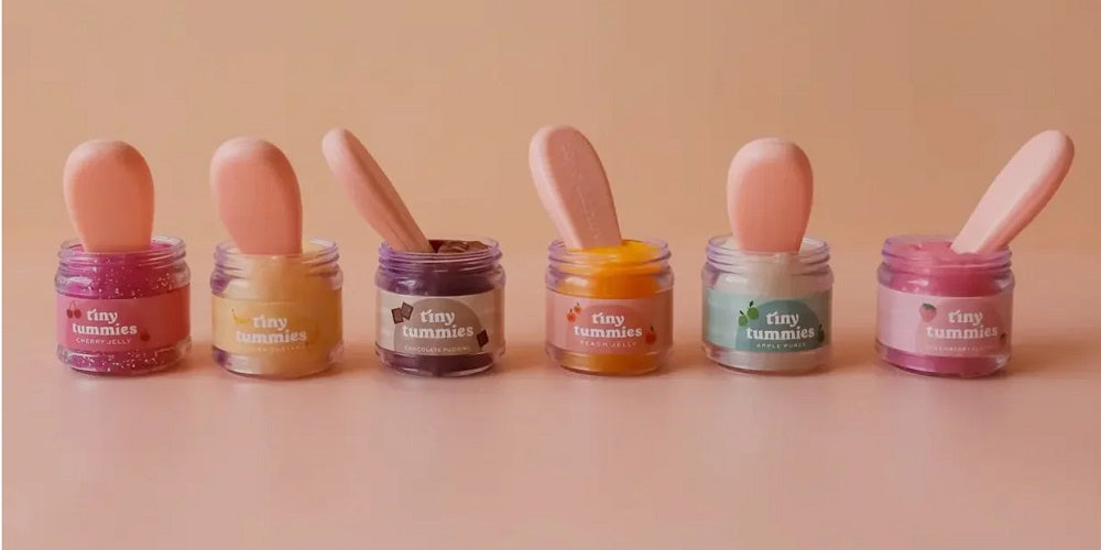Magisches Glas Tiny Tummies mit Löffel zum Füttern von Puppen – Traube