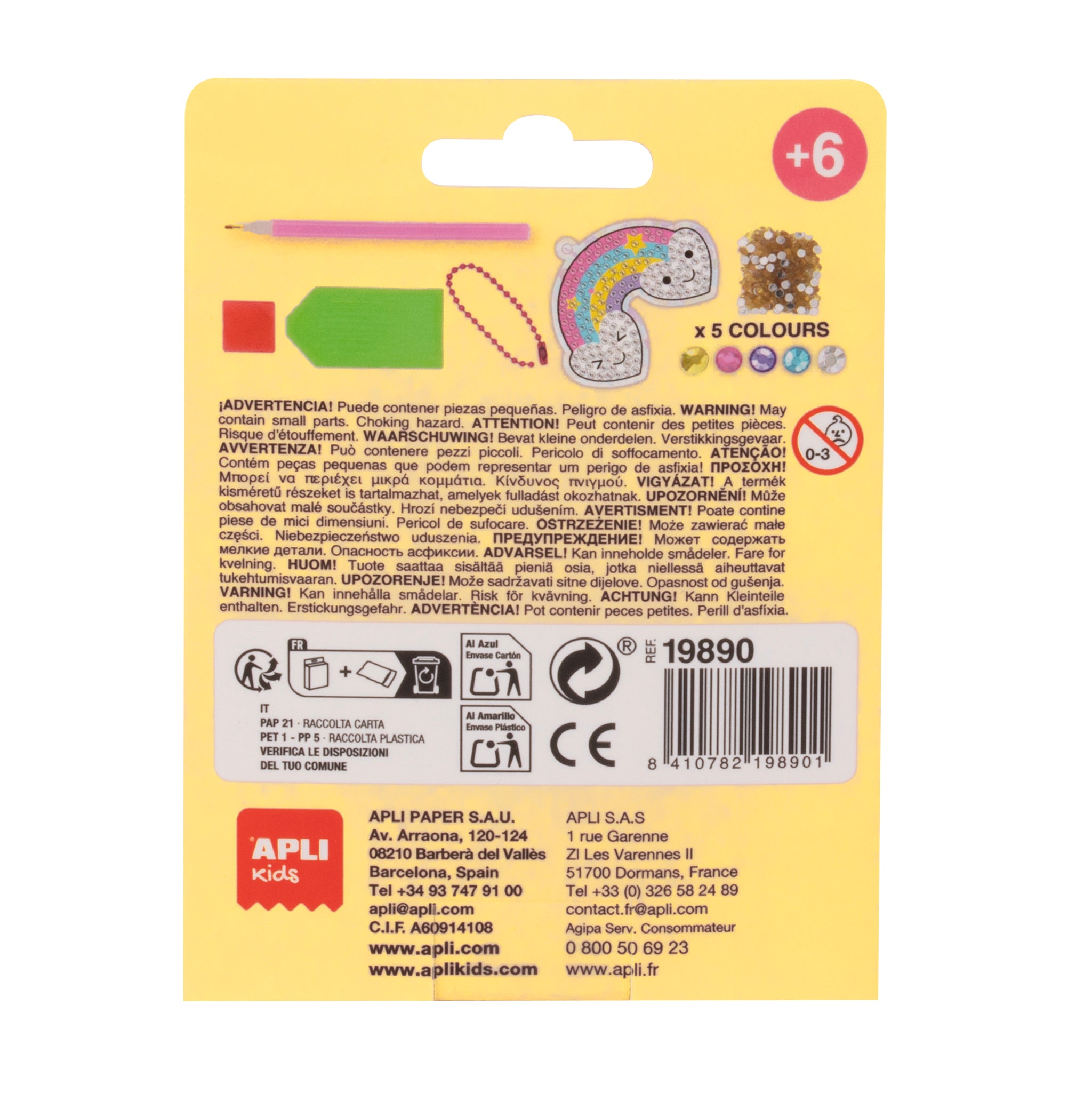 Das DIY-Set von Apli Kids ist ein einzigartiges Angebot für kleine Kreative, die kreative Herausforderungen lieben! Damit können Kinder einen diamantförmigen Schlüsselanhänger in Regenbogenform basteln, der sich hervorragend als Accessoire für Rucksäcke, Federmäppchen, Taschen oder Schlüssel eignet.
