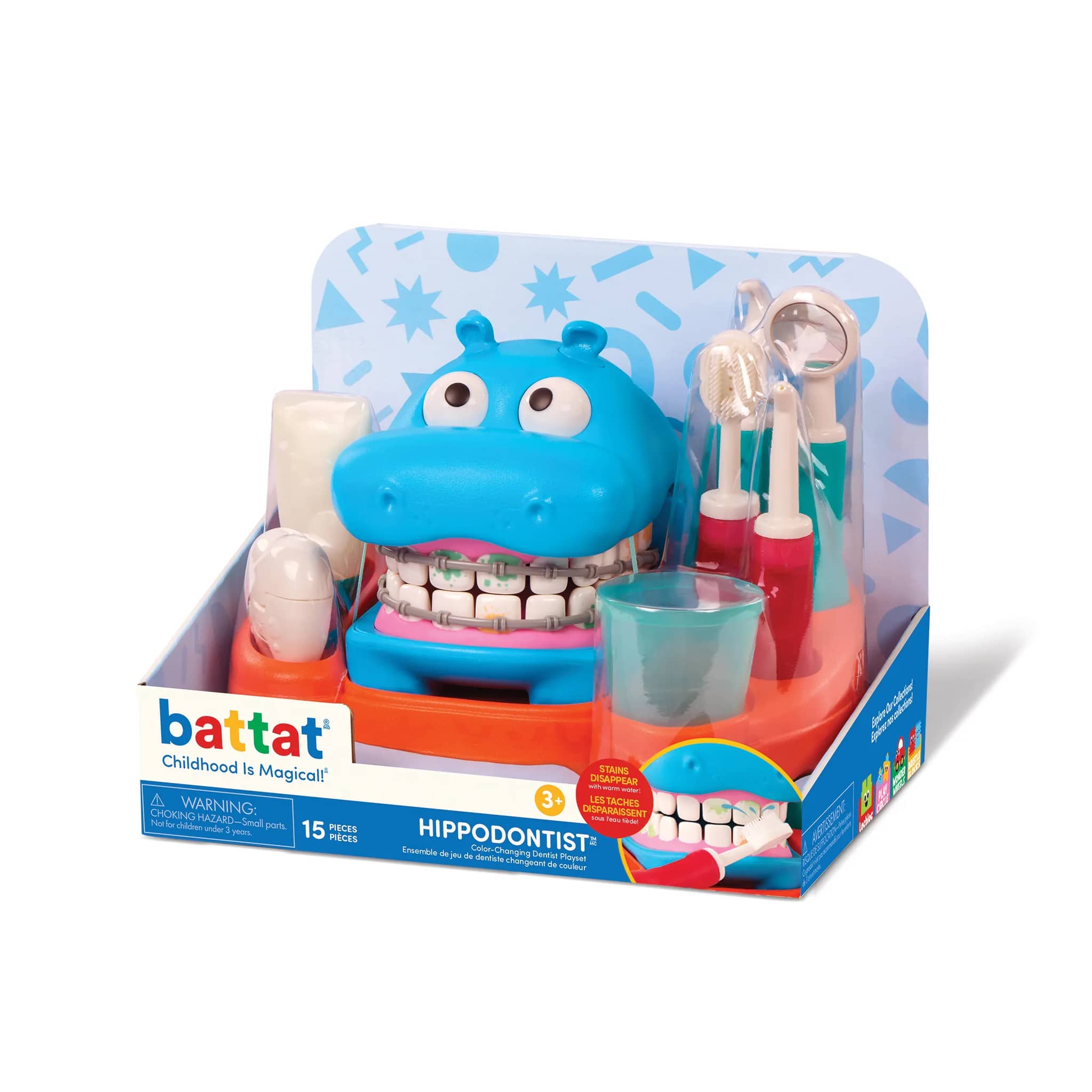Eigenschaften des Lernsets zum Zähneputzen und Zahnarzt spielen von Battat – Hippodontist (15 Teile):