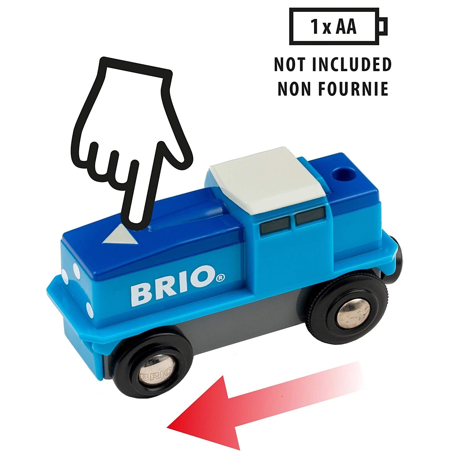Bringen Sie Ihre Fracht mit einer batteriebetriebenen Güterlokomotive in Bewegung. Dieses Kinderspielzeug verfügt über eine einfache Touch-and-Go-Funktion. Drücken Sie einfach auf den Pfeil an der Vorderseite des Fahrzeugs, um den Motor zu starten. Wenn Sie den Zug anhalten möchten, drücken Sie die Taste erneut. Die BRIO-Güterlokomotive zieht selbst schwerste Lasten. Kombinieren Sie sie mit anderen Elementen aus der BRIO-Welt und sorgen Sie so für stundenlangen kreativen Spielspaß für Ihr Kind.