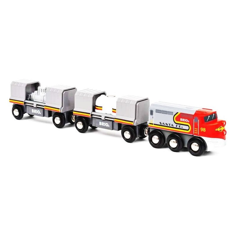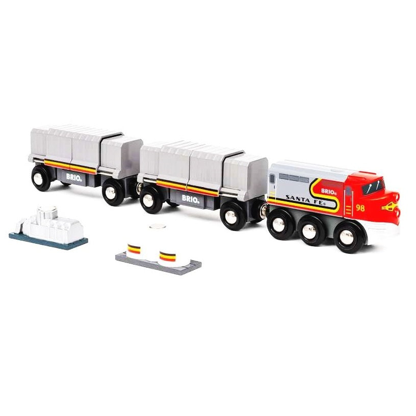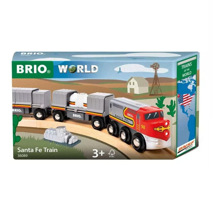 Erweitern Sie Ihre BRIO World-Sammlung um den außergewöhnlichen Santa Fe-Zug – ein Modell, das von einem der berühmtesten amerikanischen Züge, dem Santa Fe Super Chief, inspiriert ist. Dieser Zug, der jahrzehntelang die Strecken der Vereinigten Staaten befahren hat, wird nun Teil Ihrer Welt aus Holzbahngleisen.