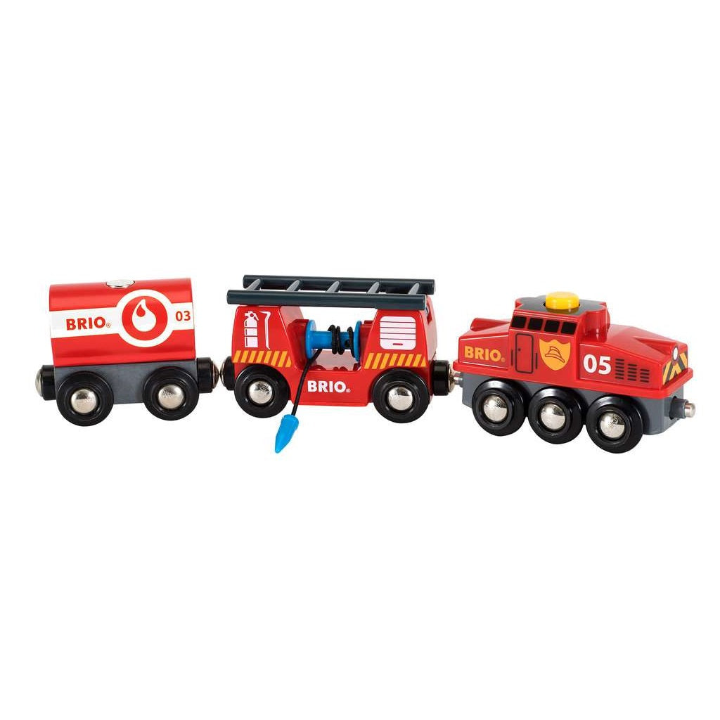 Im Brandfall drücken Sie den Knopf an der Lokomotive und entkoppeln Sie den Wagen. Fahren Sie nahe an das Feuer heran, koppeln Sie den Wagen mit dem Wassertank ab und verwenden Sie den Feuerwehrschlauch.