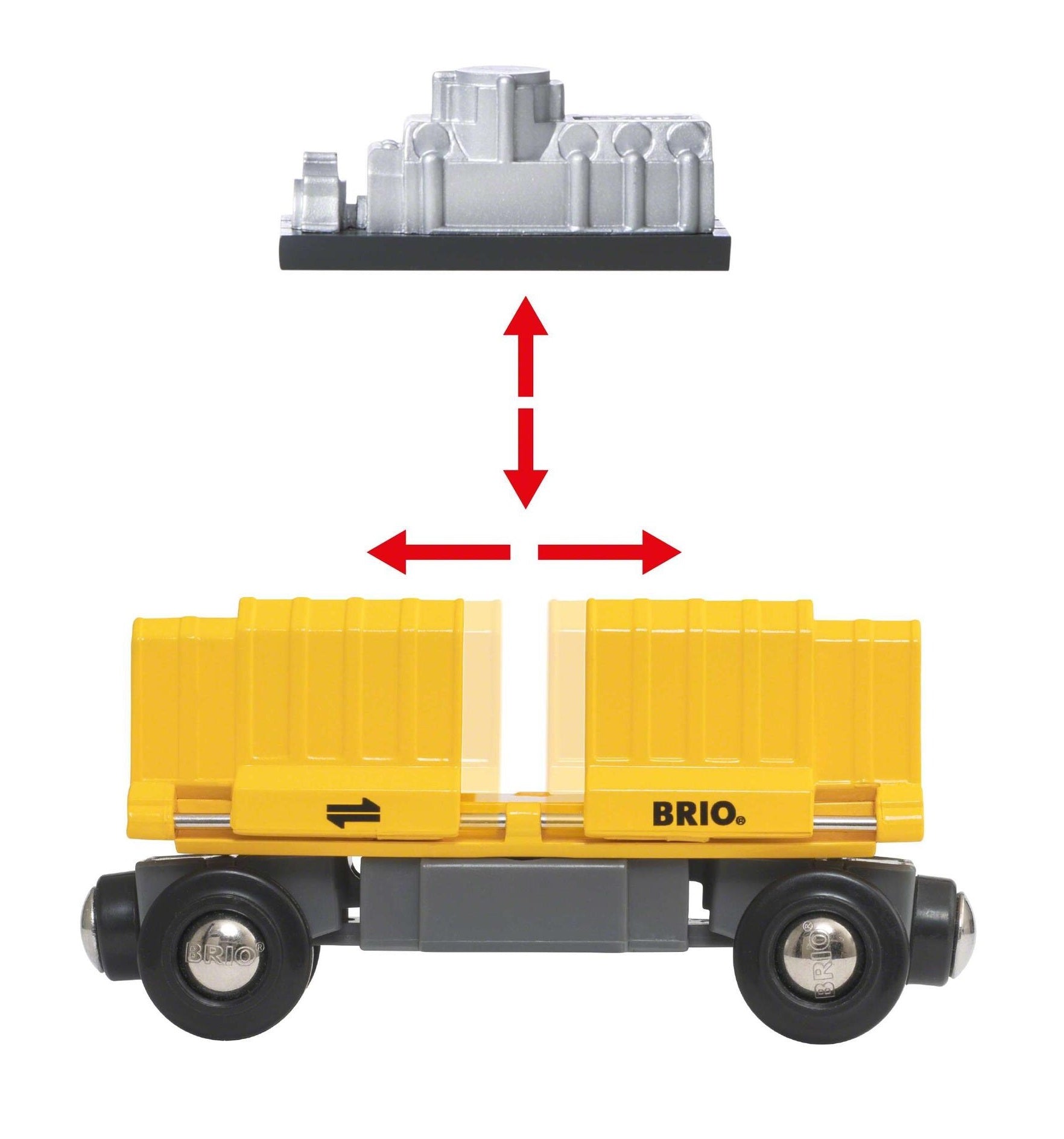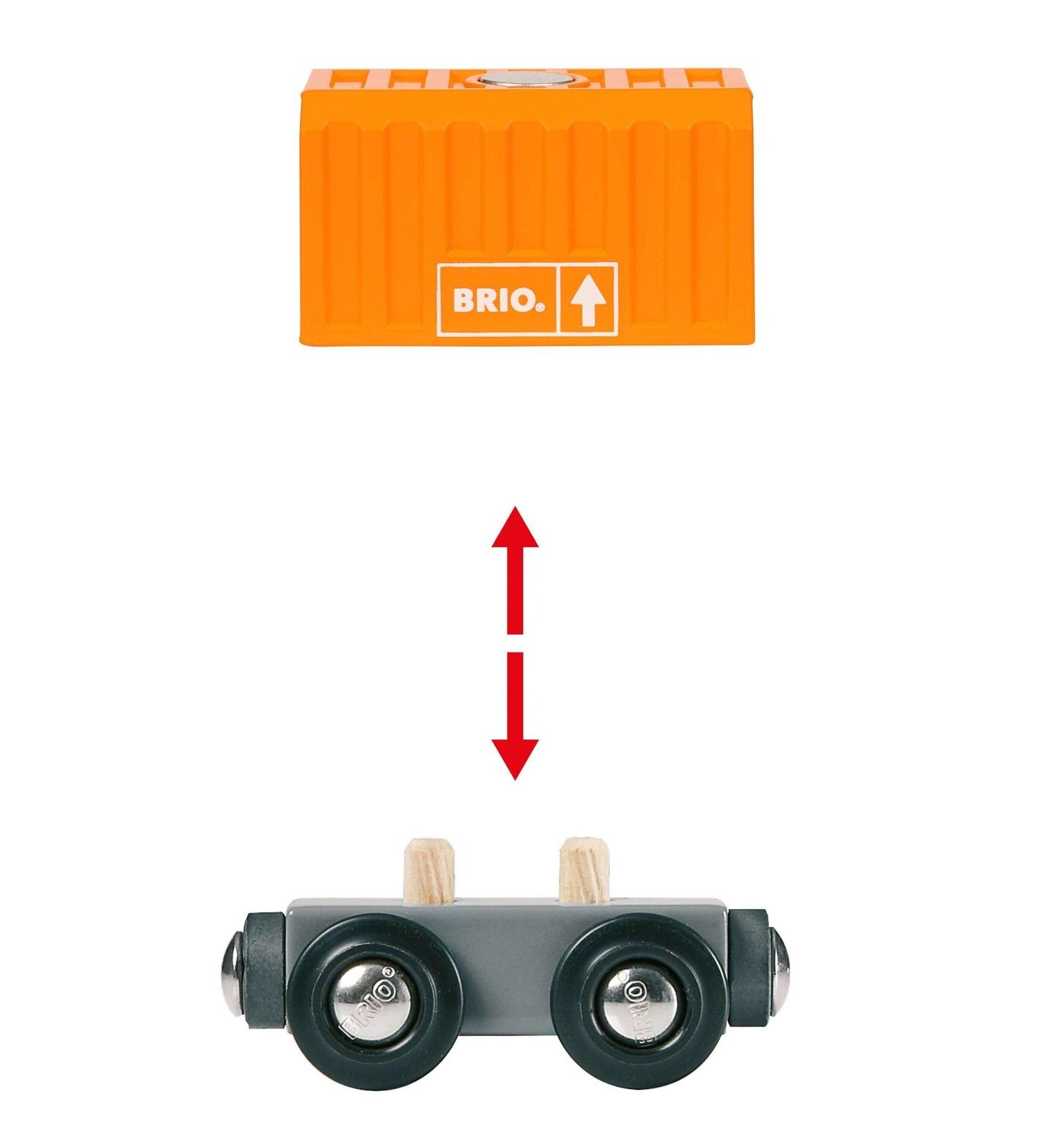 Der Güterzug verfügt über Magnetverbindungen, dank denen er mit anderen Fahrzeugen und BRIO-Waggons verbunden werden kann.