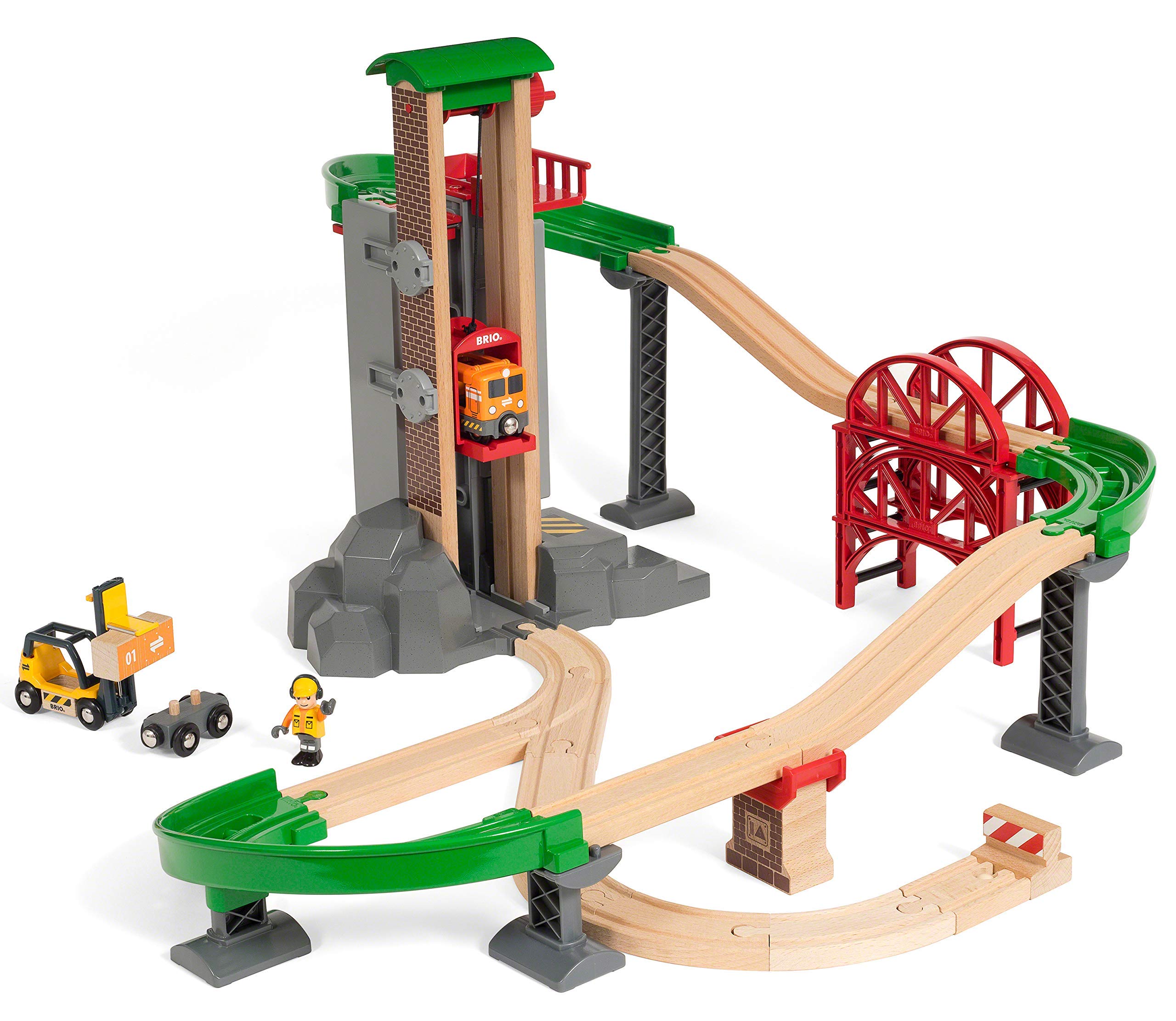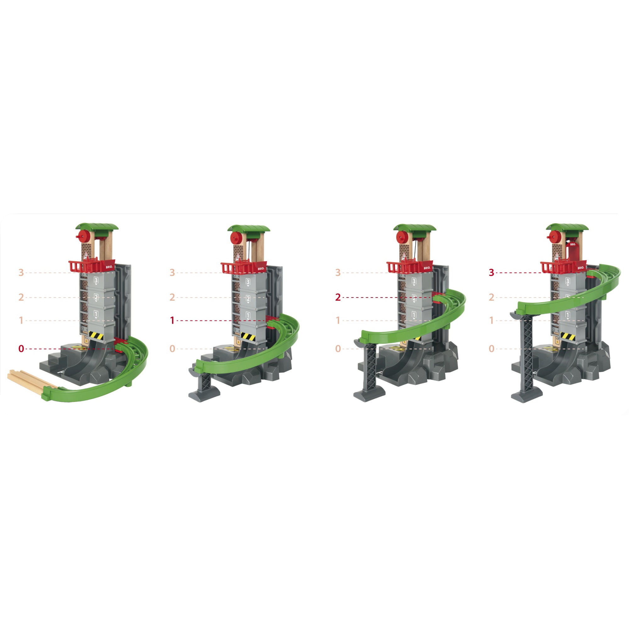 Ergänzen Sie Ihre Brio-Spielzeugsammlung mit diesem außergewöhnlichen Set, denn das Errichten vertikaler Konstruktionen ist immer besonders spannend. Mit dem Lagerset mit Aufzug können Sie bis ganz nach oben bauen... Man kann Brücken, Kurven und schräge Gleise bauen und sie dann bis zum obersten Teil des Lagers stapeln. Der Aufzug hebt den Waggon an, man muss ihn entladen und kann dann beobachten, wie er nach unten fährt. Das Set ermöglicht vielfältige Gestaltungsvarianten. Alles hängt von Ihrer Kreativität ab!