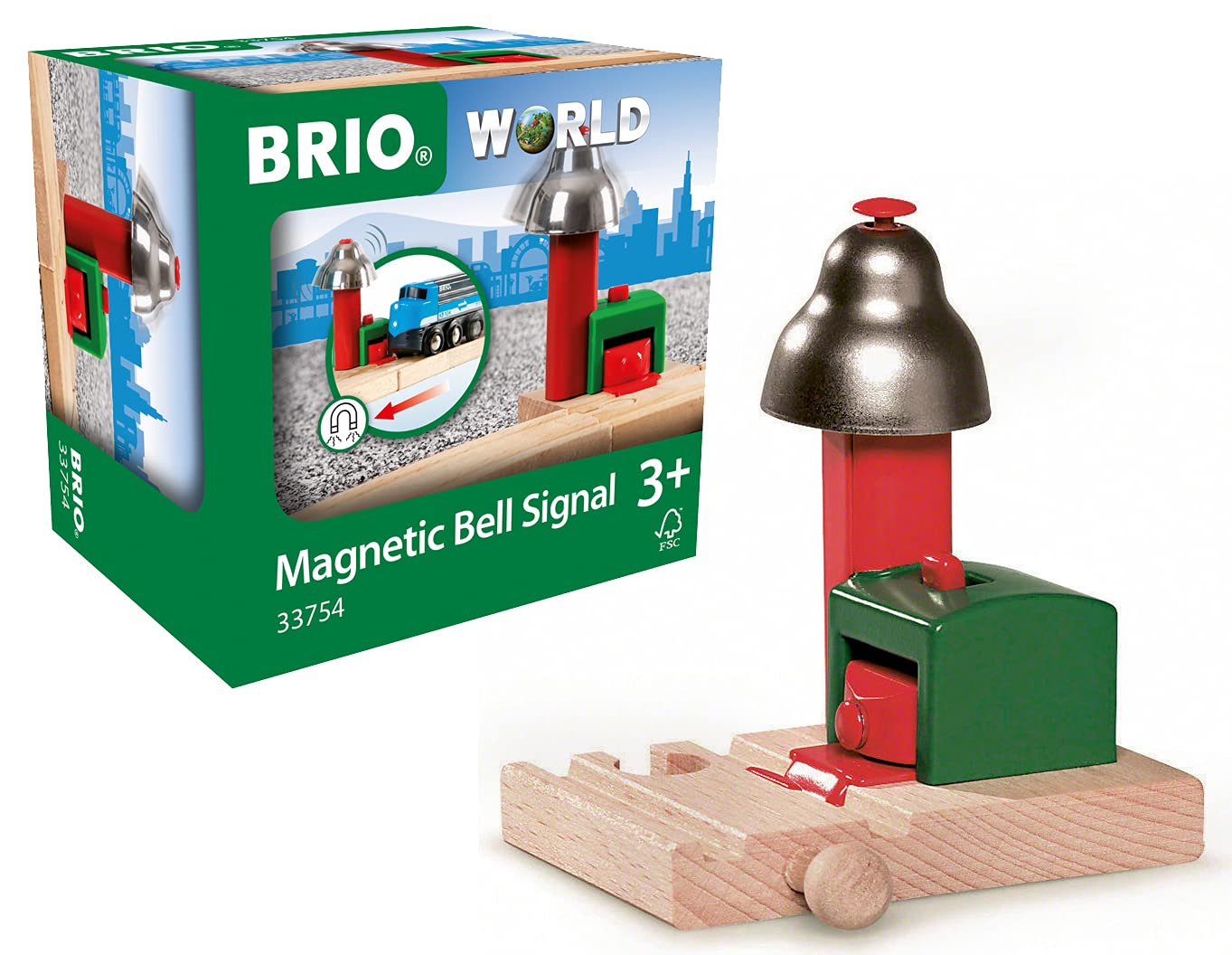Die Signalglocke ist ein ergänzendes Element der BRIO World-Serie. Ein Spielzeug für Kinder, die gerne in die Rolle eines Lokführers schlüpfen. Achtung, der Zug kommt! Die Glocke signalisiert seine Ankunft am Bahnhof oder warnt Fußgänger, die Gleise nicht zu überqueren. Unabhängig davon, ob der Zug schnell oder langsam fährt, die Signalglocke ertönt immer, sehr zur Freude des Kindes.