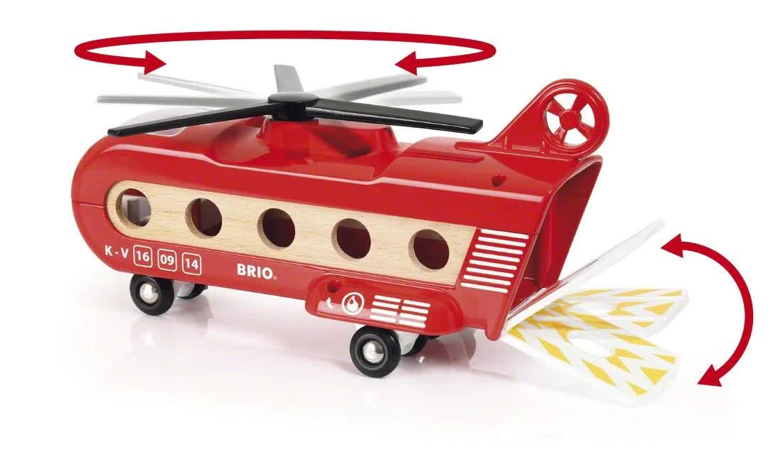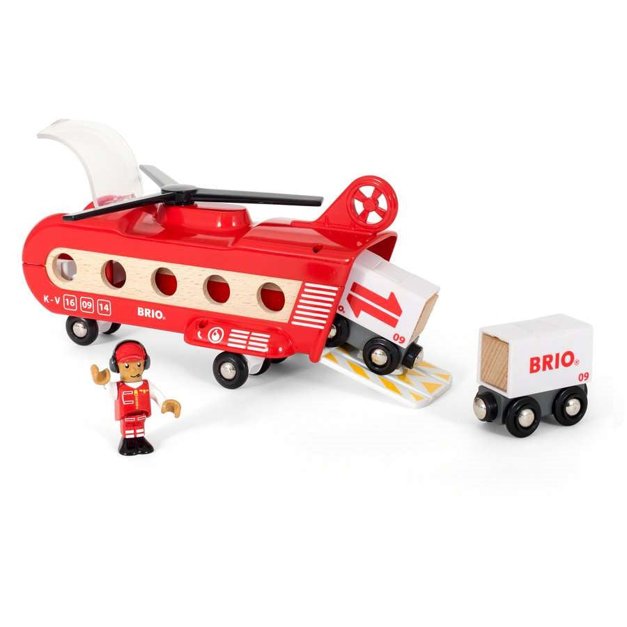 - Das Set enthält: 1x Hubschrauber, 1x Pilotenfigur, 2x Transportwagen, 2x Kunststoffladung, 2x Holzladung