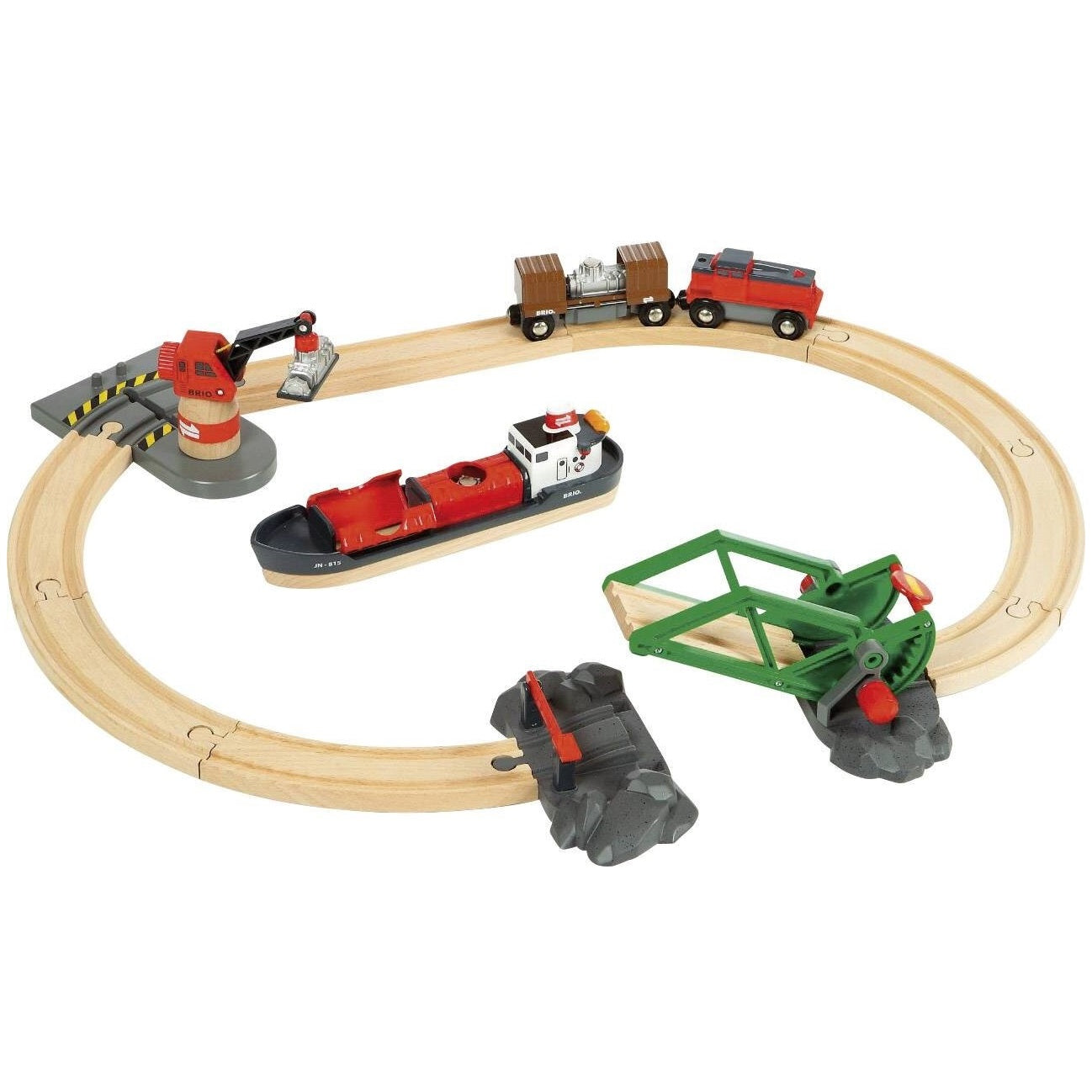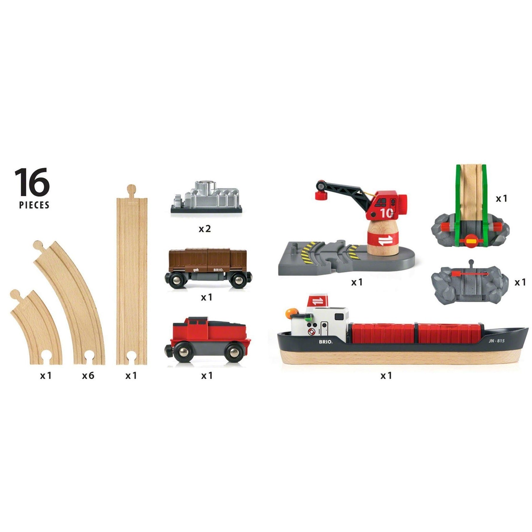 Das Containerschiff BRIO fährt mit seiner Ladung in Richtung Hafen. Am Kai wartet bereits ein Batteriezug auf die Ladung. Der multifunktionale Kran kann die Güter problemlos vom Schiff auf den Zug umladen. Das Schiff wird den Hafen verlassen, daher muss daran gedacht werden, die Brücke anzuheben.