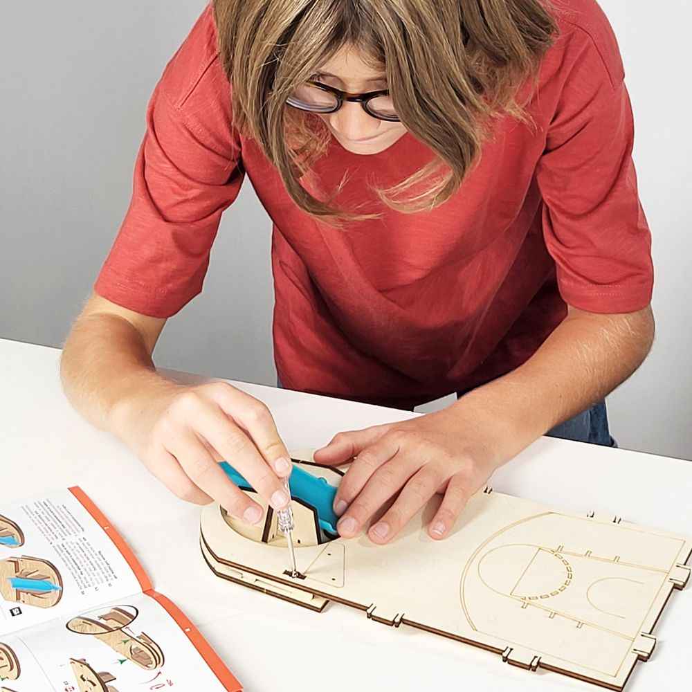 Baue dein eigenes elektronisches Basketballfeld und erlebe die Spannung eines echten Spiels! Dieses kreative DIY-Set ist nicht nur ein großer Spaß, sondern auch ein lehrreiches Erlebnis – das Kind montiert selbstständig die Anzeigetafel, das Steuerungspanel, den Lautsprecher und weitere Komponenten mithilfe des beiliegenden kindersicheren Schraubenziehers. Kein Kleber, kein Chaos – nur reine Freude über ein selbstgebautes Spielzeug.