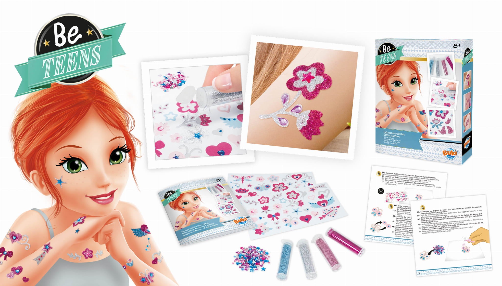 Eigenschaften des Sets Glitzer-Tattoos Buki: