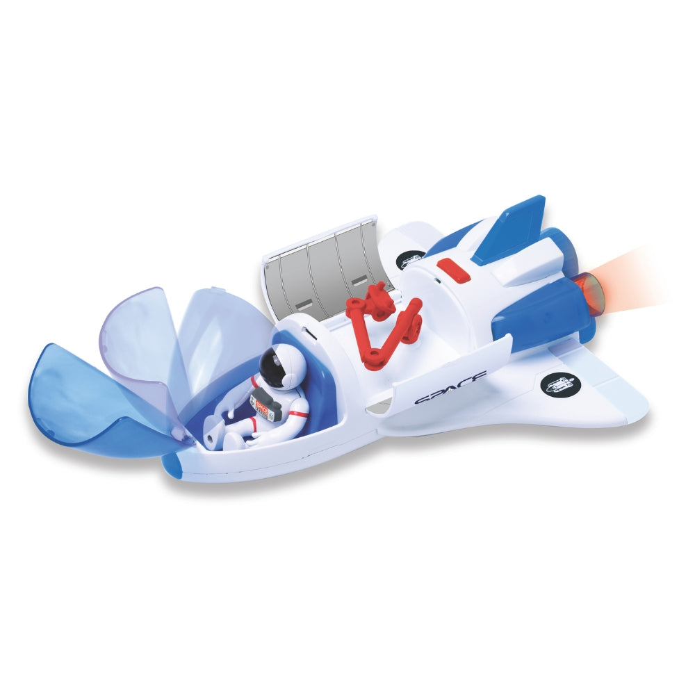 Die Türen des Shuttles lassen sich öffnen und geben den Blick auf einen ausfahrbaren Gelenkarm frei – der perfekte Platz für den mitgelieferten Astronauten. Die Figur kann im Cockpit sitzen oder auf dem Arm stehen, sodass Ihr Kind verschiedene Szenarien von Weltraummissionen nachspielen und dabei seine Fantasie und Erzählfähigkeiten entwickeln kann. Es ist ein großartiges Spielzeug sowohl zum selbstständigen Spielen als auch für gemeinsame Weltraumabenteuer mit den Eltern.