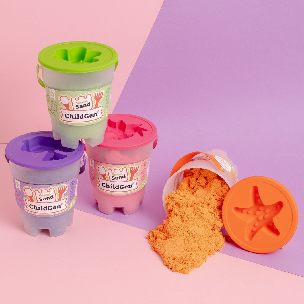 Entdecken Sie die Magie des kreativen Spiels mit dem natürlichen kinetischen Sand von ChildGen, der die Entwicklung der Fantasie und der motorischen Fähigkeiten von Kindern fördert! Hergestellt aus natürlichen Zutaten, wohlriechend und sicher - ideal für Kinder und Erwachsene, die einen Moment der Entspannung und Ruhe suchen. Er ist weich und leicht zu formen und eignet sich perfekt zum Drücken, Zerdrücken und Berühren, was ein angenehmes sensorisches Erlebnis bietet.