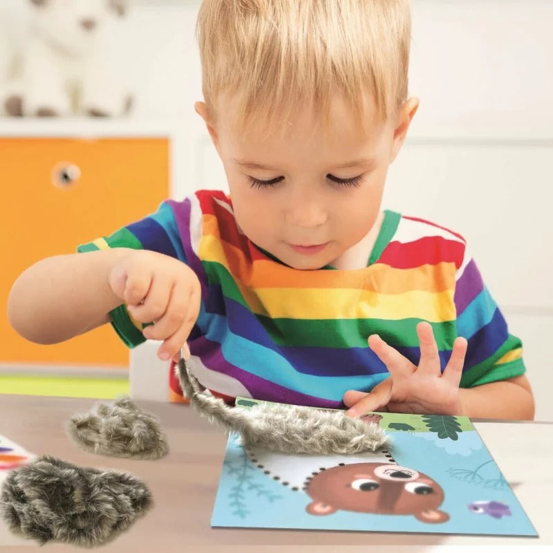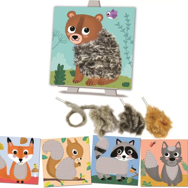 Entdecken Sie die magische Welt der Waldtiere mit einem Set, das jedes Kind begeistern wird. Im Inneren finden Sie 5 niedliche Karten mit Tiermotiven: Bär, Fuchs, Eichhörnchen, Waschbär und Wolf. Ihr Kind kann sie mit einem dicken Wollfaden verzieren, indem es diesen durch die Löcher in den Karten fädelt – ein einfaches und sicheres Spiel, das sogar für Kleinkinder ab 3 Jahren geeignet ist.