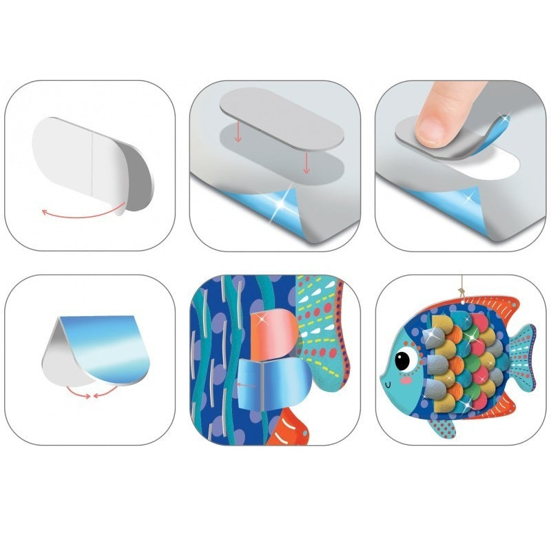 - Das Set enthält: 3 Pappfiguren, 64 metallisierte Schuppen, 6 Metallblätter und eine Anleitung