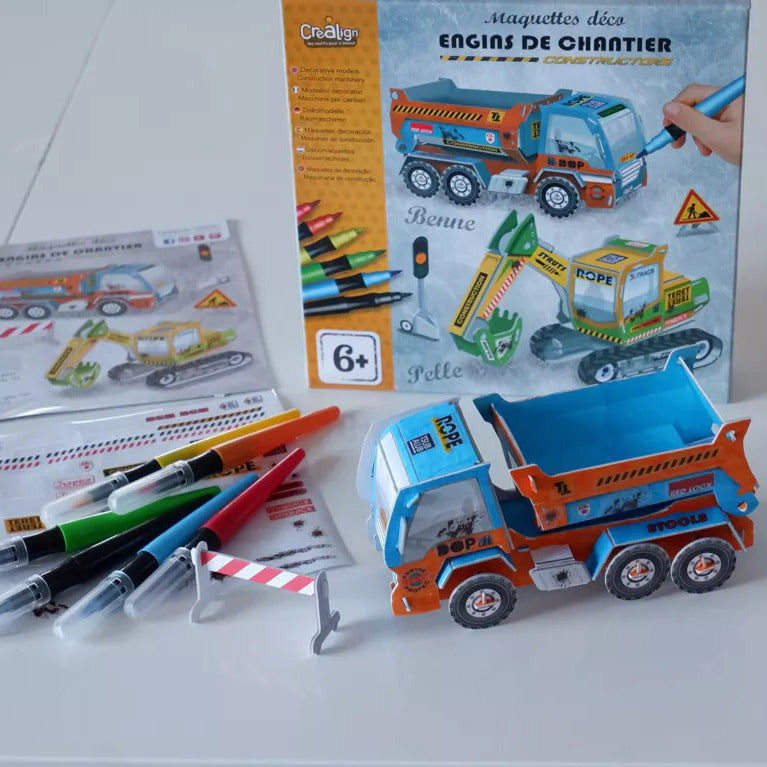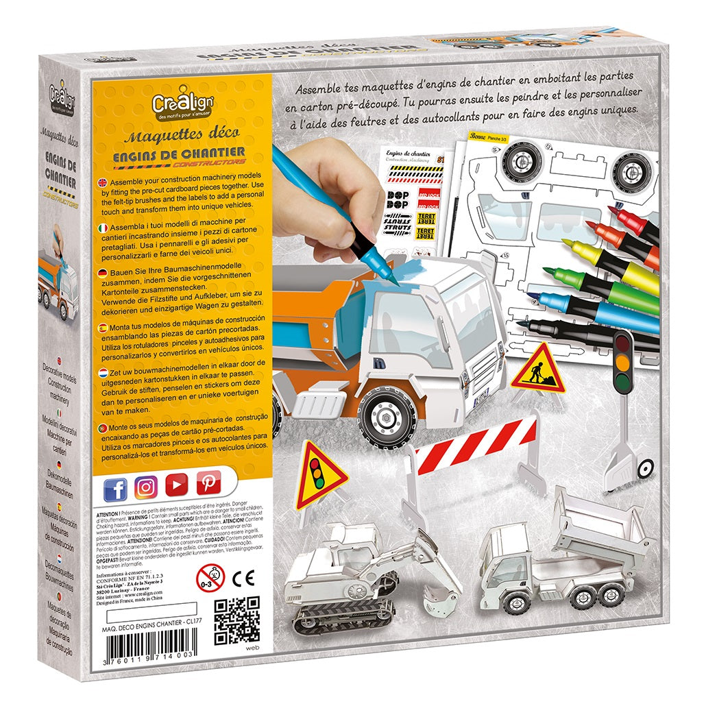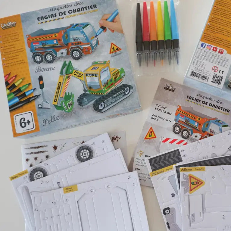Das Kreativset der Marke Crea Lign' ist ein hervorragendes Angebot für Kinder ab 6 Jahren, die gerne bauen und dekorieren. Mit diesem Set haben kleine Konstrukteure die Möglichkeit, selbst beeindruckende Modelle von Baumaschinen wie Kipplaster, Bagger und Elemente der Straßeninfrastruktur zu bauen.