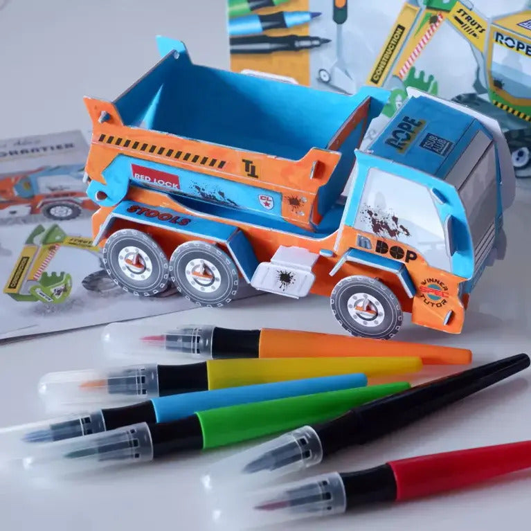 Das Set enthält alle notwendigen Materialien für die Herstellung realistischer Modelle, die aus dickem und strapazierfähigem Karton gefertigt sind. Nach dem Zusammenbau der Modelle können die Kinder diese mit den beiliegenden Stiften und Aufklebern verzieren und den Fahrzeugen so ein einzigartiges Aussehen verleihen.