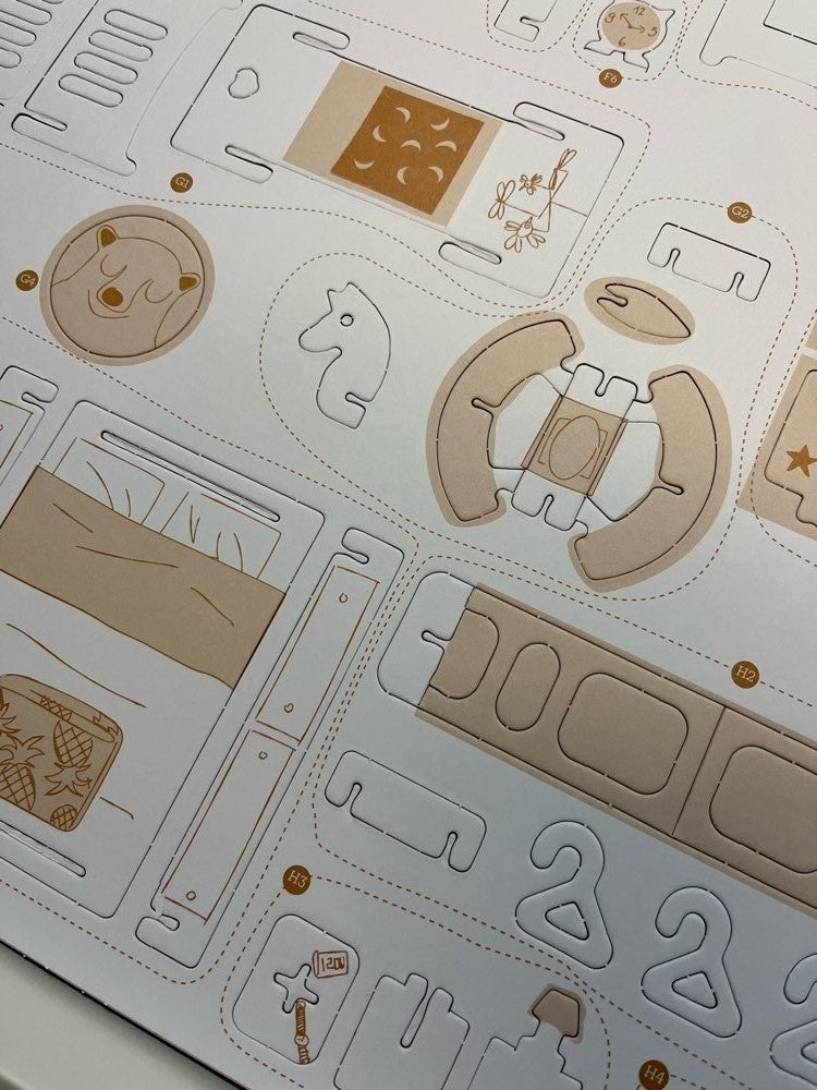Kreatives Set zum Bauen eines Traum-Puppenhauses der Marke Djeco. Das Set fördert die Kreativität und Fantasie des Kindes. Das zweistöckige Haus besteht aus 225 Teilen – Möbel und Accessoires (Geschirr, Bücher, Tablets, Dekoartikel…). Es macht Spaß, die Möbel zu bemalen und zusammenzubauen und das Haus nach eigenen Vorstellungen zu dekorieren. Das Haus ist für Miniaturpuppen mit einer Höhe von +/- 8 cm geeignet. Eine ausgezeichnete Geschenkidee.