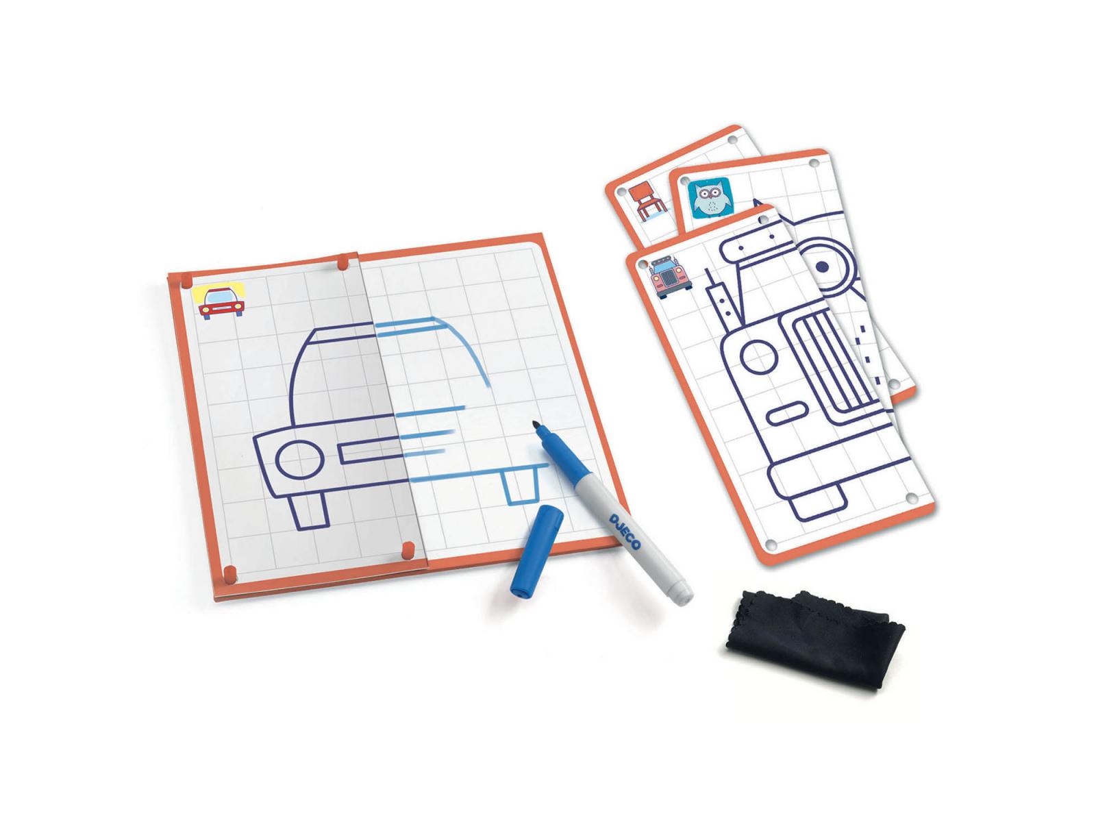 Eduludo ist eine Reihe interessanter Lerntafeln, die die Fähigkeiten Ihres Kindes auf verschiedene Weise testen. Mit dem Set „Symetrie and Co” lernt Ihr Kind Schritt für Schritt, wie man bestimmte Bildelemente unter Verwendung der Achsensymmetrie zeichnet, und dank der abwischbaren Tafel kann es endlos üben. Das Set enthält 1 quadratische Zeichenplatte, 1 trocken abwischbaren Stift, 1 Tuch und 24 Bilder auf 12 doppelseitigen Karten.