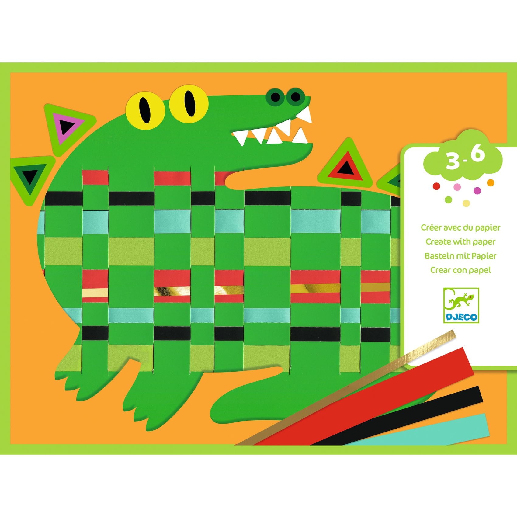 Przed, za, przed, za... Zestaw artystyczny Zaplatanki pomaga stworzyć wyjątkowe obrazki zwierząt za pomocą pasków z papieru. Podążając za instrukcją należy oderwać odpowiedni pasek i zapleść go na szablonie, przekładając przez przygotowane otwory raz górą, a raz dołem. Następnie należy dopasować planszę z otworem w kształcie zwierzątka i przykleić ją załączonym samoprzylepnymi kwadracikami, aby zakryć wystające końcówki pasków. W zestawie znajdują się naklejki do dodatkowego ozdobienia projektów. Wielkość otworów i pasków do przeplatania jest dostosowana do wieku dziecka.
