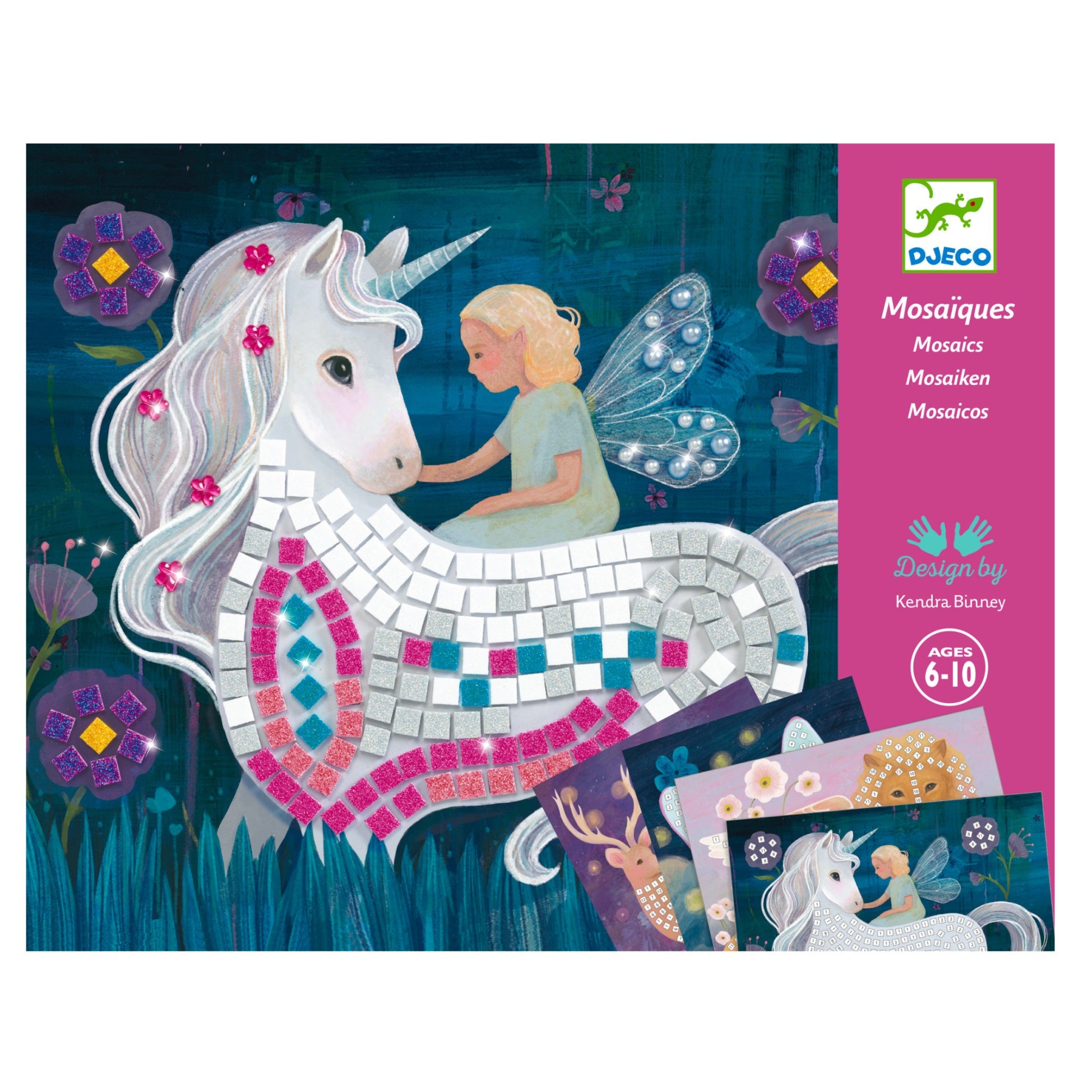 Die Djeco-Kunstsets sind einzigartig, interessant und regen die Kreativität der Kinder, aber auch der Eltern an ;) Anhand der in der Illustration angegebenen Zahlen klebt das Kind selbstklebende Schaumstoff-Glitzer-Quadrate und kreiert so wunderschöne Bilder einer verzauberten Welt.