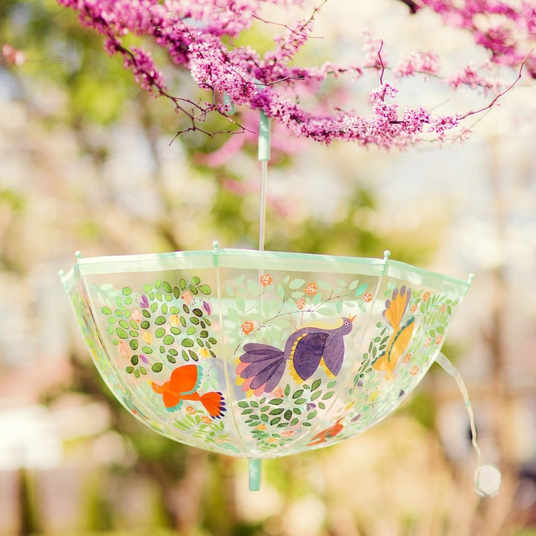 Dieser transparente Kunststoffschirm von Djeco schützt Sie vor Regen (und lässt Sie sehen, wohin Sie gehen). Für zusätzliche Sicherheit wurde der Schirm mit einem sicheren Öffnungssystem ausgestattet, um Ihre Finger vor Verletzungen zu schützen, und die Enden der Stangen haben die Form von Kunststoffkugeln. Der Schirm hat ein neues Gestell aus Fiberglas erhalten - weich und doch stark. Die Ränder des Schirms sind mit einer bunten Paspel versehen.