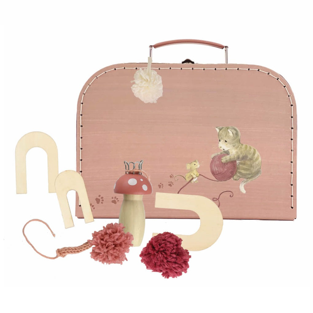 In diesem bezaubernden Set findet Ihr Kind alles, um seine eigenen Kreationen zu gestalten: 8 Wollfarben, 3 Holzelemente zum Basteln von Pompons.