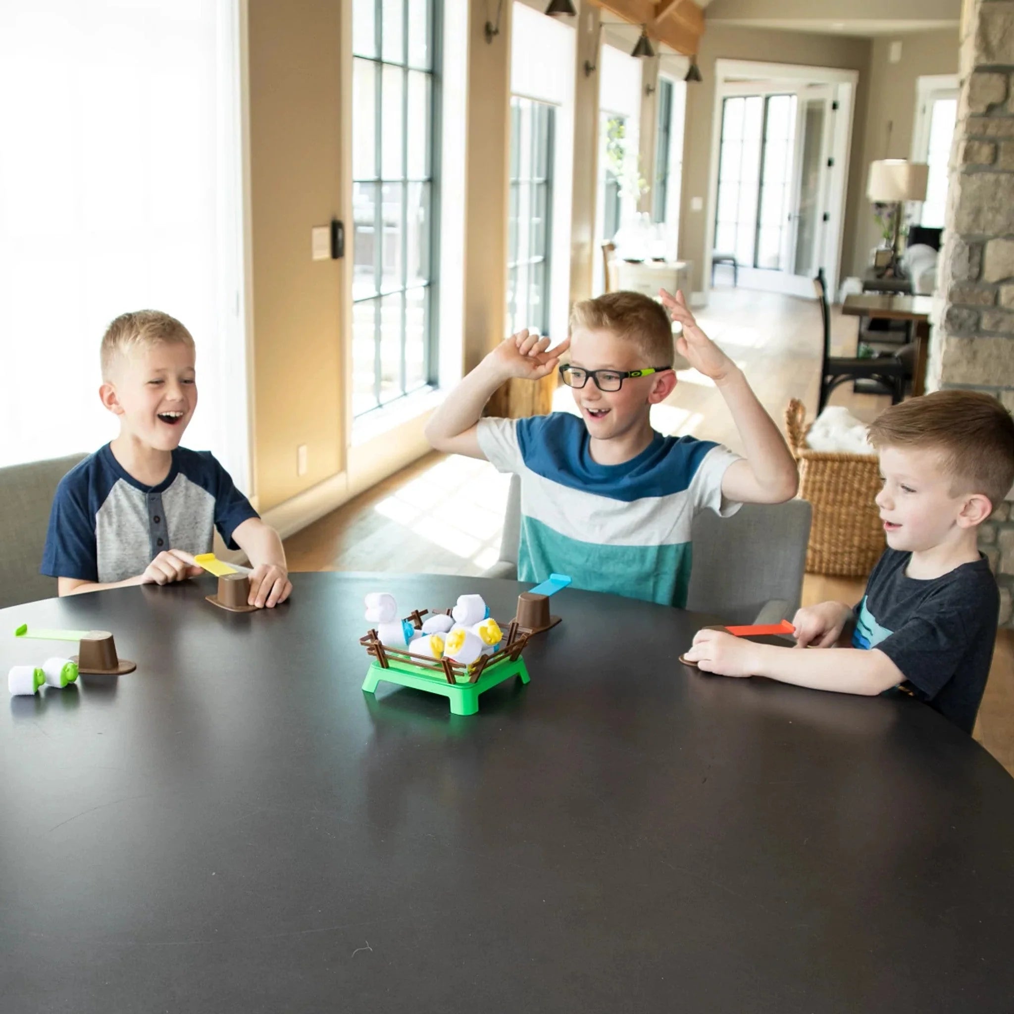 Ein spannendes Arcade-Spiel von Fat Brain Toys! Schieße alle Schafe vom Katapult ab, damit sie im Pferch landen. Jedes Schaf hat eine andere Farbe und ist mit einem Klettverschluss versehen. Versuchen Sie, alle Schafe in den Pferch zu bringen. Wenn ein Schaf nicht in den Pferch fällt, können Sie es erst im nächsten Zug versuchen. Der Spieler, der mit großer Präzision schießt und alle seine Tiere im Gehege unterbringt, gewinnt!