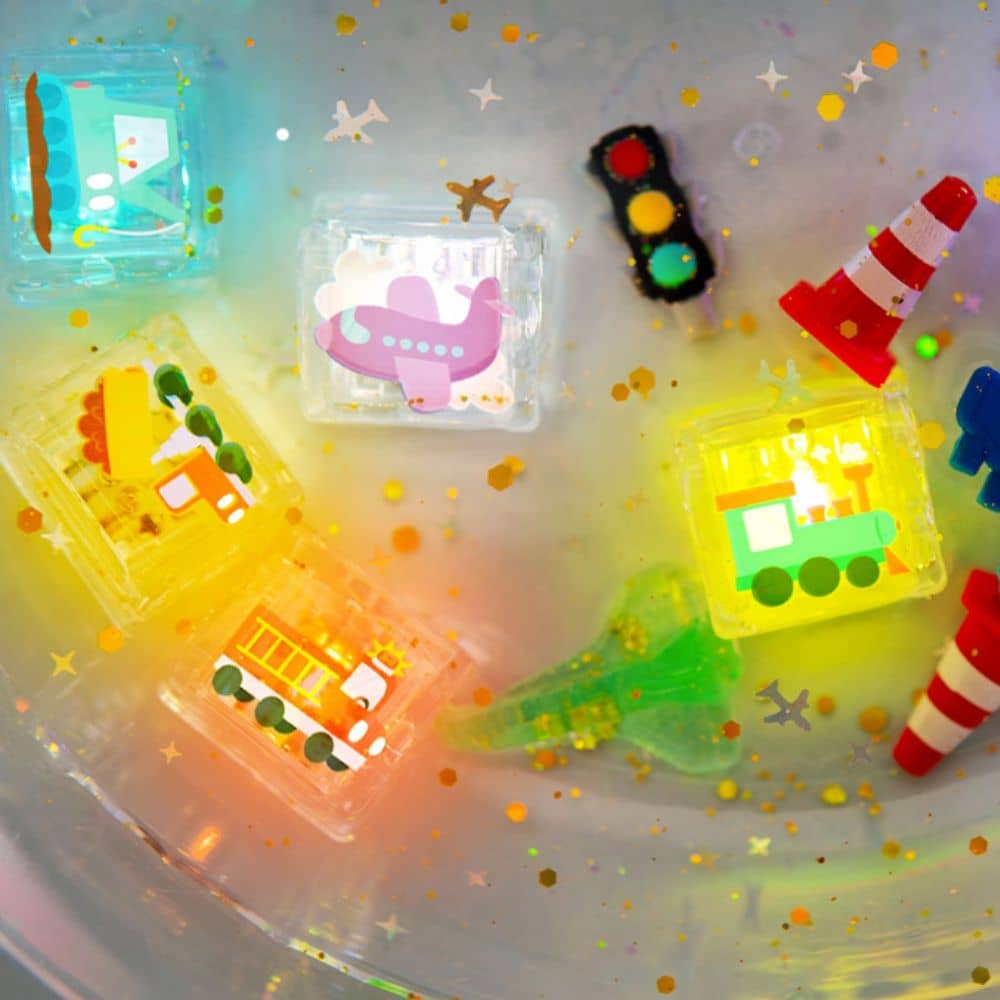 Sensorische Würfel, die im Wasser leuchten – Fahrzeuge, 6 Stück