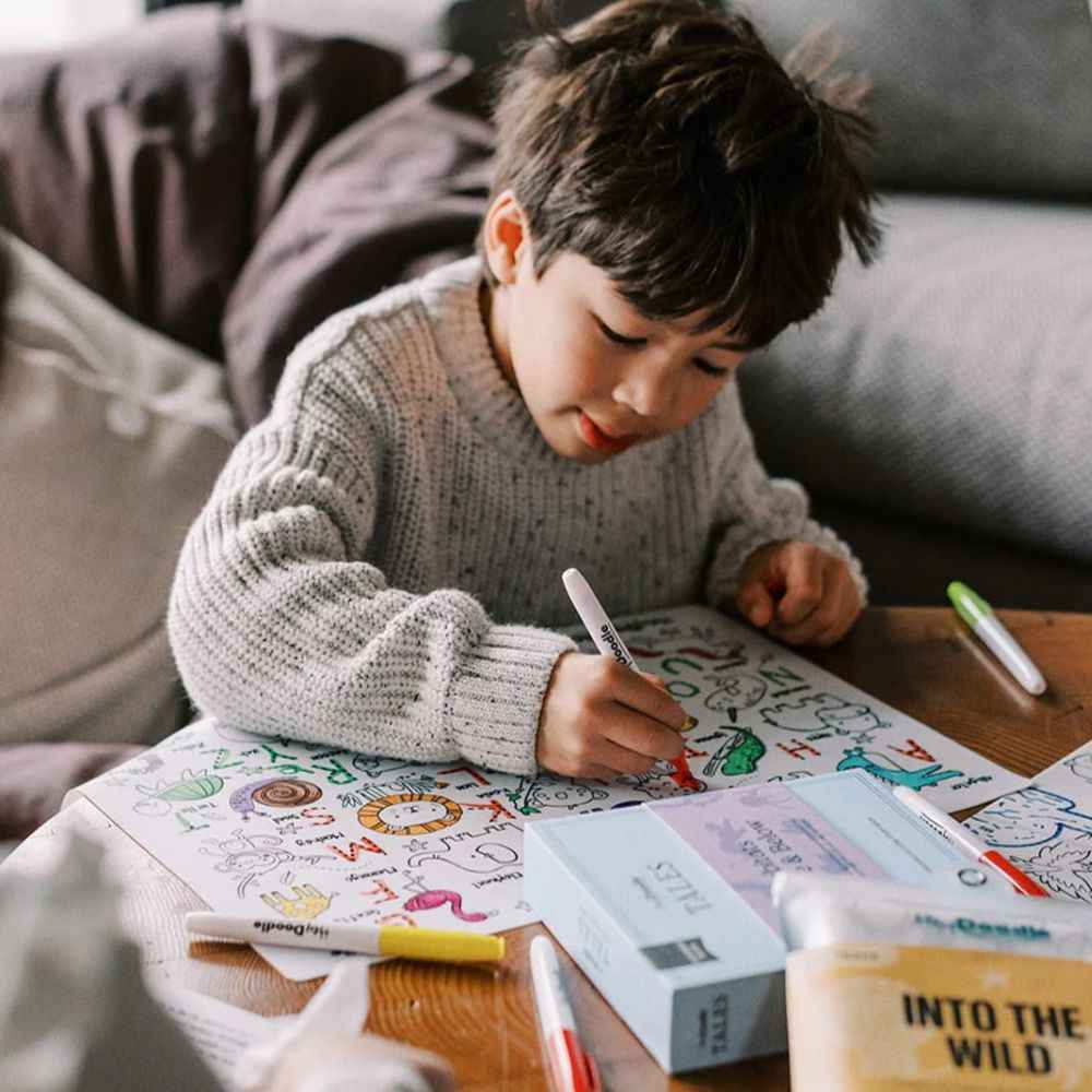 Die australische Marke HeyDoodle hat die Verpackung so gestaltet, dass sie sowohl schön als auch praktisch ist – perfekt als Geschenk und anschließend für den Spielspaß zu Hause, unterwegs, im Auto oder bei der Familie. Nach dem Spielen lassen sich Filzstifte und Matte wieder ordentlich im hübschen Etui verstauen.
