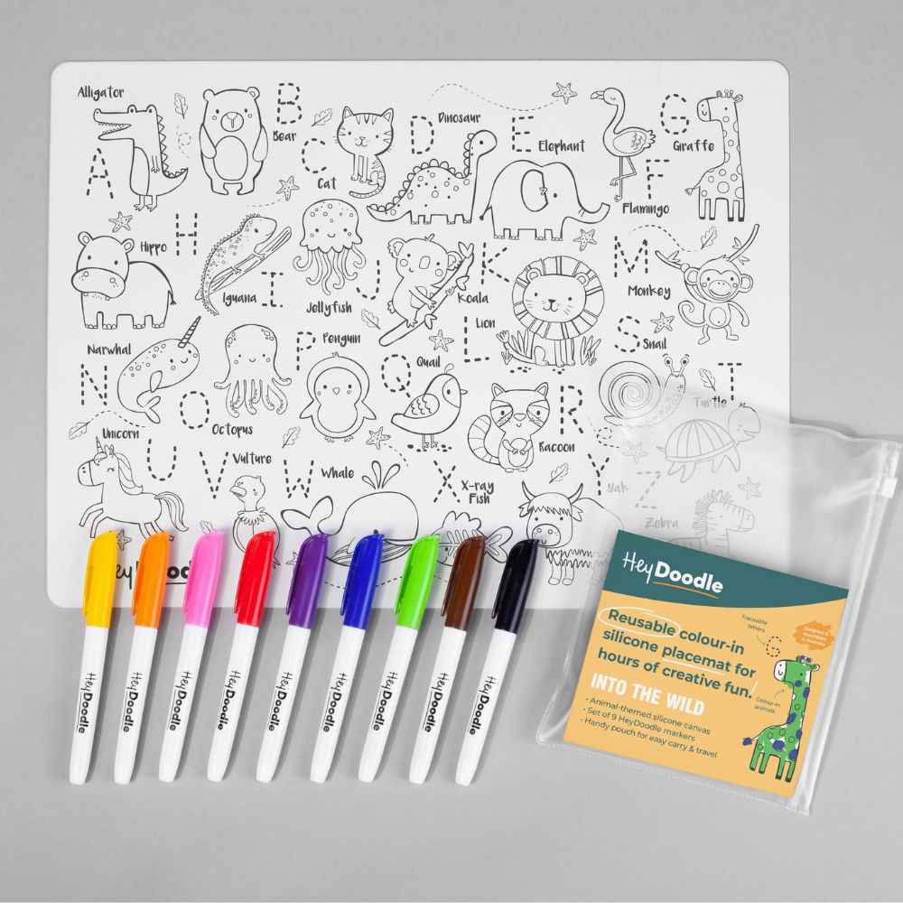 Große Silikon-Malunterlage zum Wiederverwenden von HeyDoodle in der Variante: Wilde Tiere