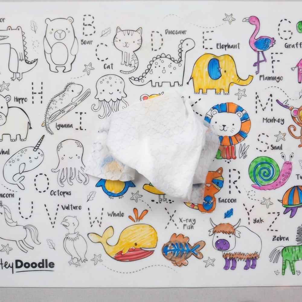 Eigenschaften der großen Silikon-Malunterlage zum Wiederverwenden HeyDoodle – Wilde Tiere: