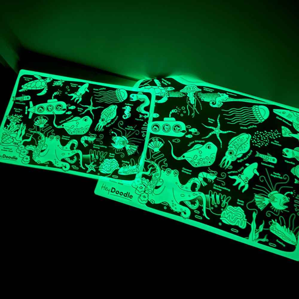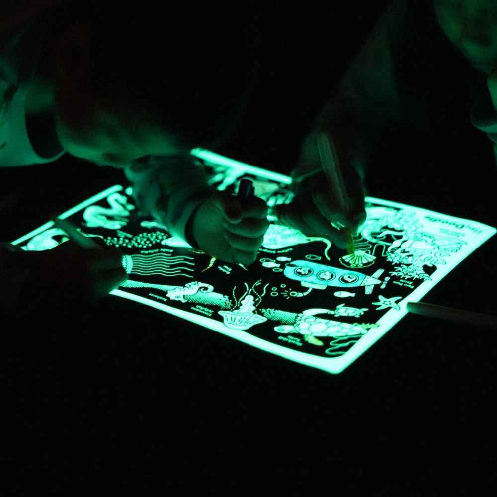 - Im Dunkeln leuchtende, mehrfach verwendbare Malunterlage mit Unterwasser-Motiv.