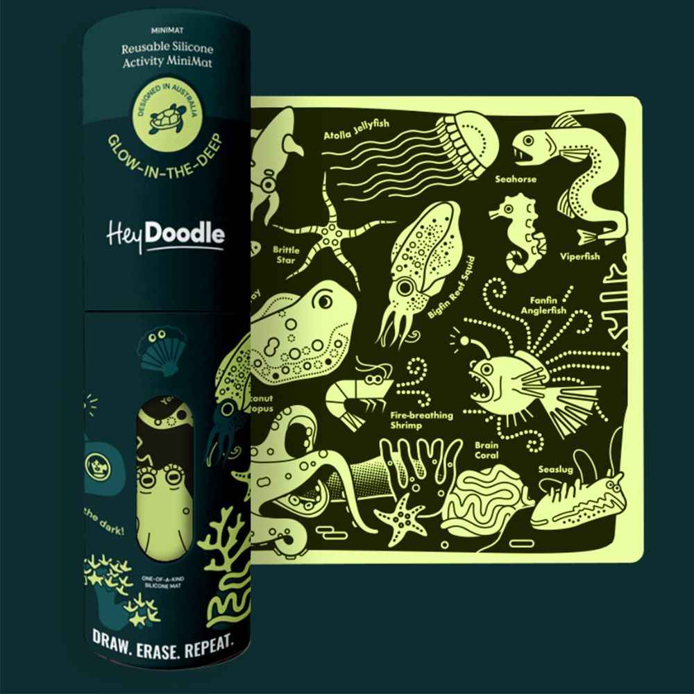 Im Dunkeln leuchtende kleine Silikon-Malunterlage von HeyDoodle in der Variante: Meerestiefen