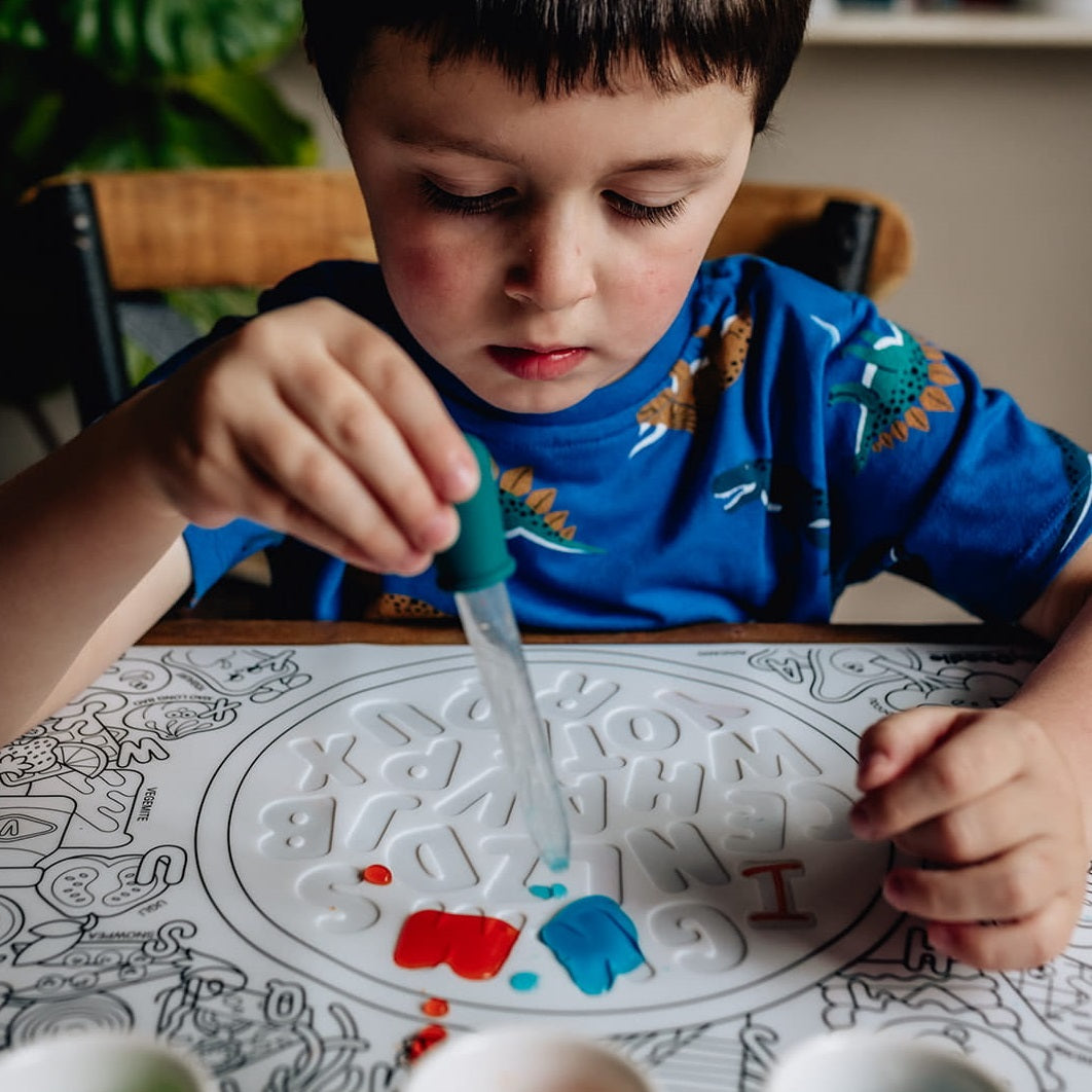 HeyDoodle Sensory Multicolouring Silikonmatte - Strohhalm und fleißige Würmer