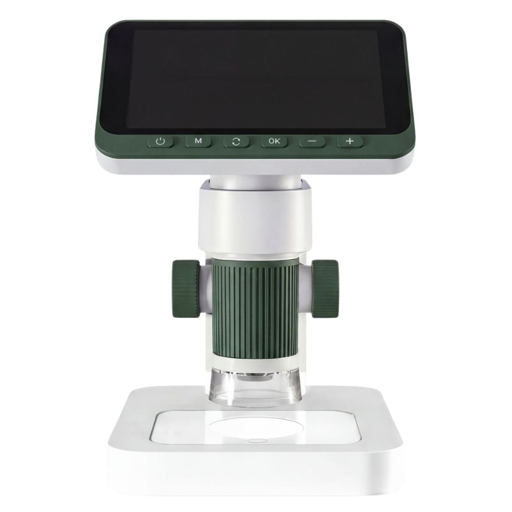 Dank des großen 4,5-Zoll-Bildschirms ist das Bild klar und angenehm zu betrachten, und durch die manuelle Fokussierung lässt sich die Vergrößerung genau an die zu untersuchende Probe anpassen. Das Mikroskop kann auf zwei Arten verwendet werden – auf einem Labortisch zur Beobachtung biologischer Präparate oder in der Hand, um Gegenstände zu untersuchen, die man bei Spaziergängen und beim Spielen im Freien gefunden hat.