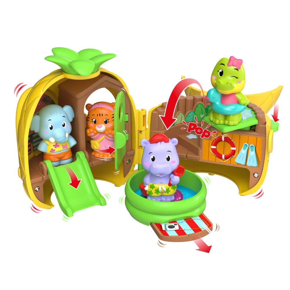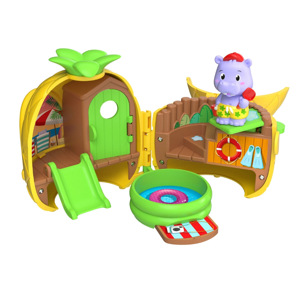 - Inhalt des Sets: aufklappbares Haus in Form einer Ananas, 1 Tier – Kevin, das Nilpferd