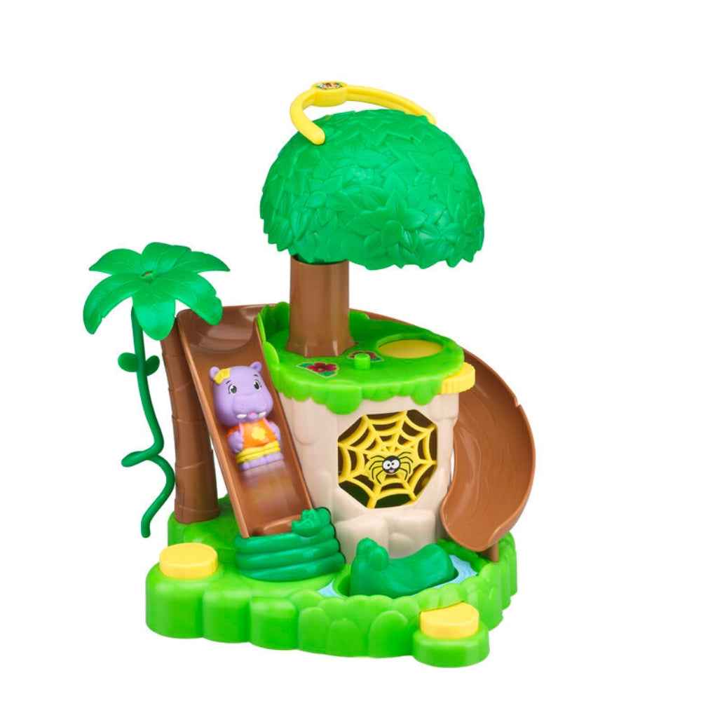 - Im Set enthalten: aufklappbares Häuschen mit Katapult, Rutsche und Liane zum Schaukeln, Figur von Nilpferddame Olga