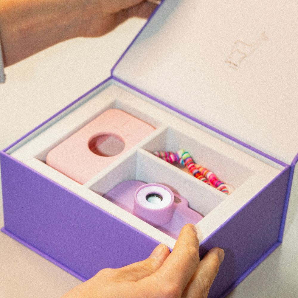Die Lalarma Camera ist mehr als nur eine gewöhnliche Kamera – sie ist ein einzigartiges Set voller kreativer Spielmöglichkeiten, mit dem Kinder die Welt selbstständig entdecken und die schönsten Momente festhalten können. Dank der einfach zu bedienenden Tasten, der Farbfilter und der leichten Konstruktion eignet sich die Kamera hervorragend als erste Kamera für Kinder.