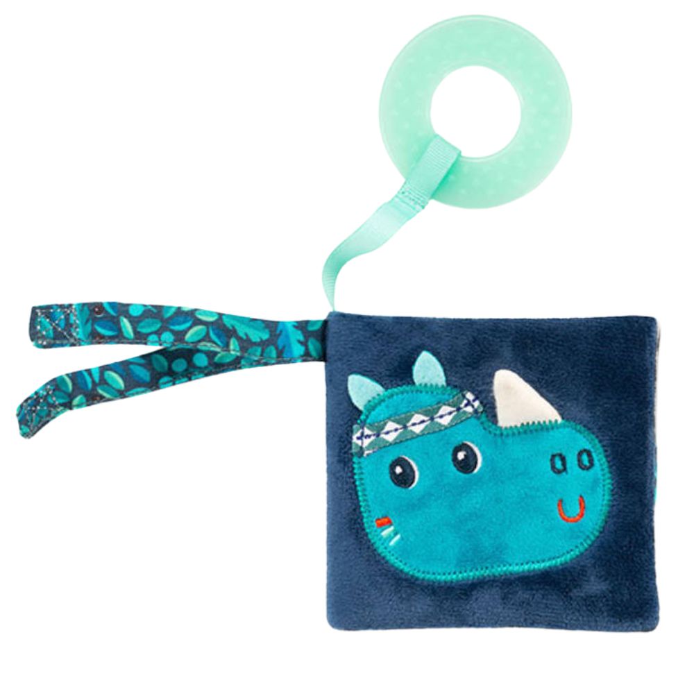 Weiches multifunktionales Mini-Buch mit Silikon-Beißring – Nashorn Marius 6 m+