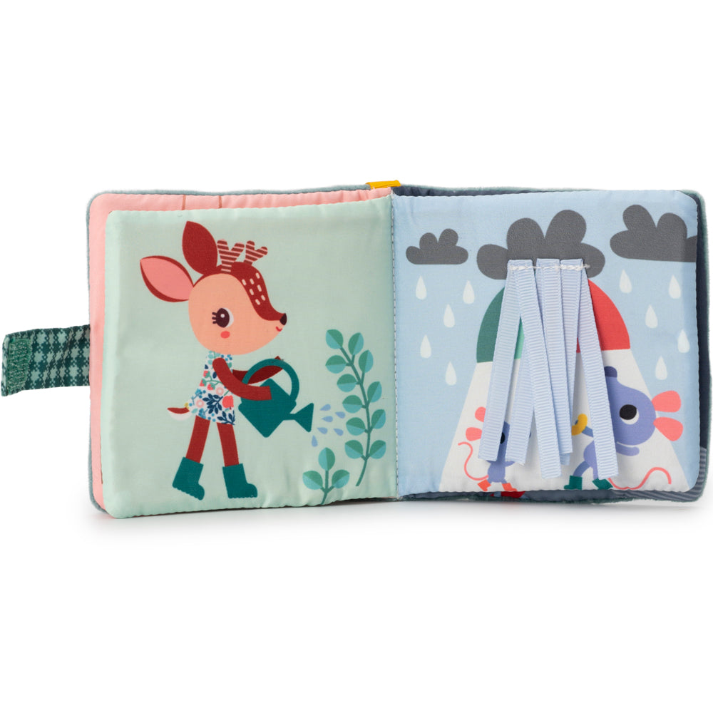 Es regt die Fantasie und Neugierde der Kinder an und aktiviert die Sinne des Sehens, Fühlens und Hörens. An das Buch ist ein runder, strukturierter gelber Beißring aus Silikon genäht, der Linderung in der schwierigen Zeit des Zahnens bringt, und ein gepunktetes Band mit Klettverschluss ermöglicht es, das Buch z. B. am Kinderwagen zu befestigen. Das Spielzeug ist eine großartige Möglichkeit, Ihrem Kind die Liebe zu Büchern zu vermitteln.
