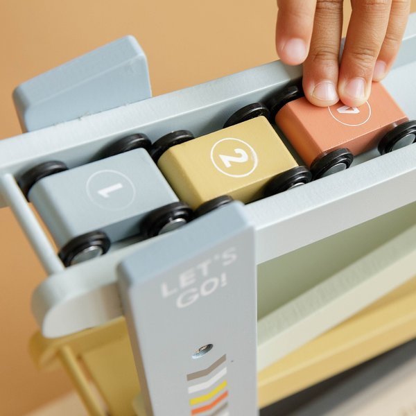 Die Autospielbahn von Little Dutch verfügt über 4 Ebenen und enthält 4 kleine Rennautos, die von oben nach unten sausen können. Die Fahrzeuge können auch separat bespielt werden. Gefertigt aus hochwertigem Holz und bemalt mit kindersicheren Farben auf Wasserbasis. Die Rutsche ist schön in einem Karton verpackt und eignet sich hervorragend als Geschenk.