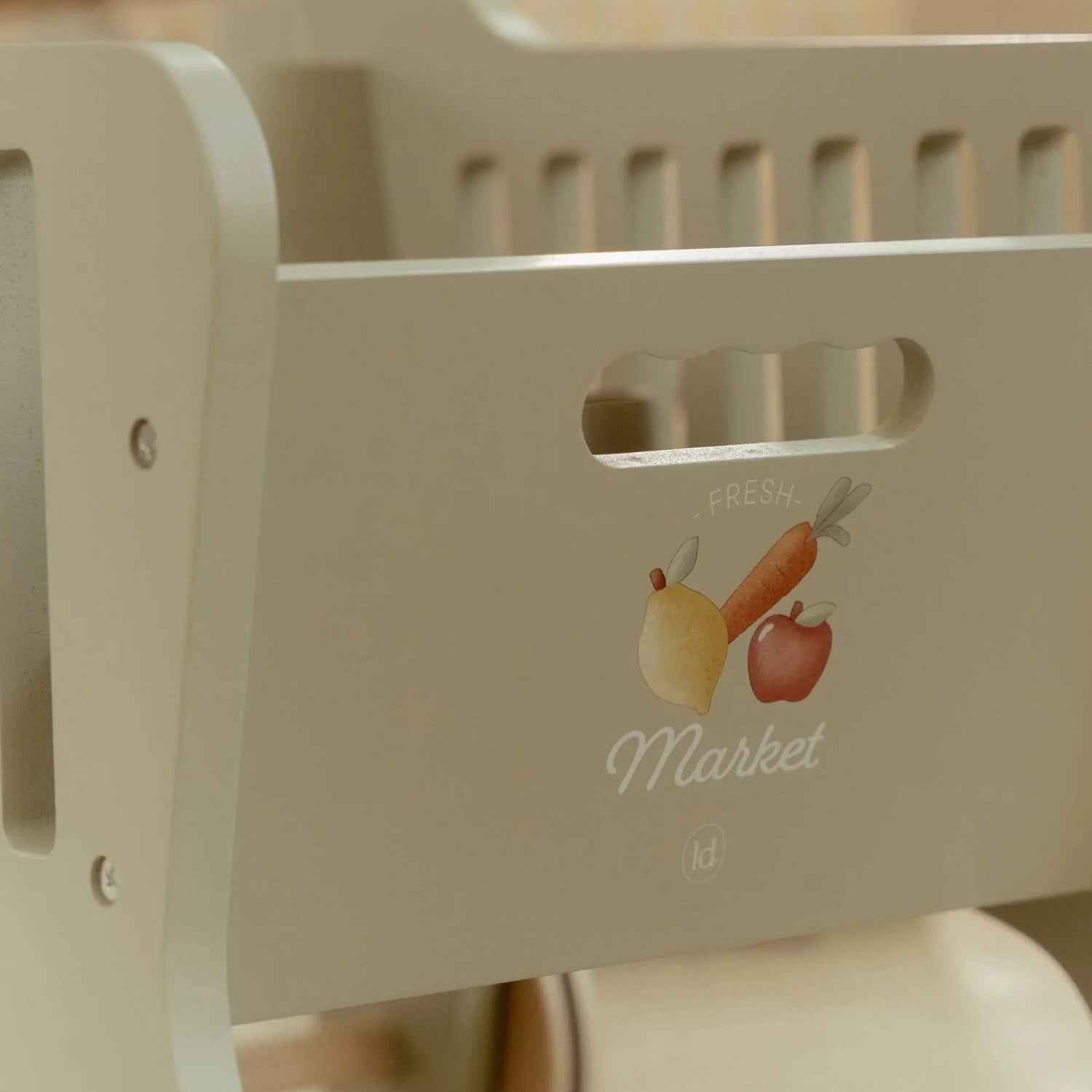 Verbinden Sie den Wagen mit dem Little Dutch Marktstand und schaffen Sie Ihren eigenen kleinen Markt zu Hause, der stundenlangen kreativen Spielspaß garantiert!