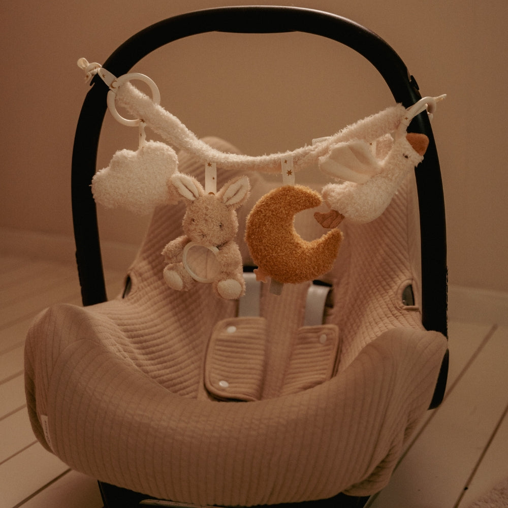 Dank praktischer Befestigungsschlaufen lässt sich das Spielzeug ganz einfach am Autositz, Kinderwagen oder Babybett anbringen – so ist für Spaß in jeder Situation gesorgt. Eine tolle Geschenkidee für Neugeborene und eine schöne Ergänzung zu weiteren Spielzeugen der Newborn-Naturals-Kollektion von Little Dutch.
