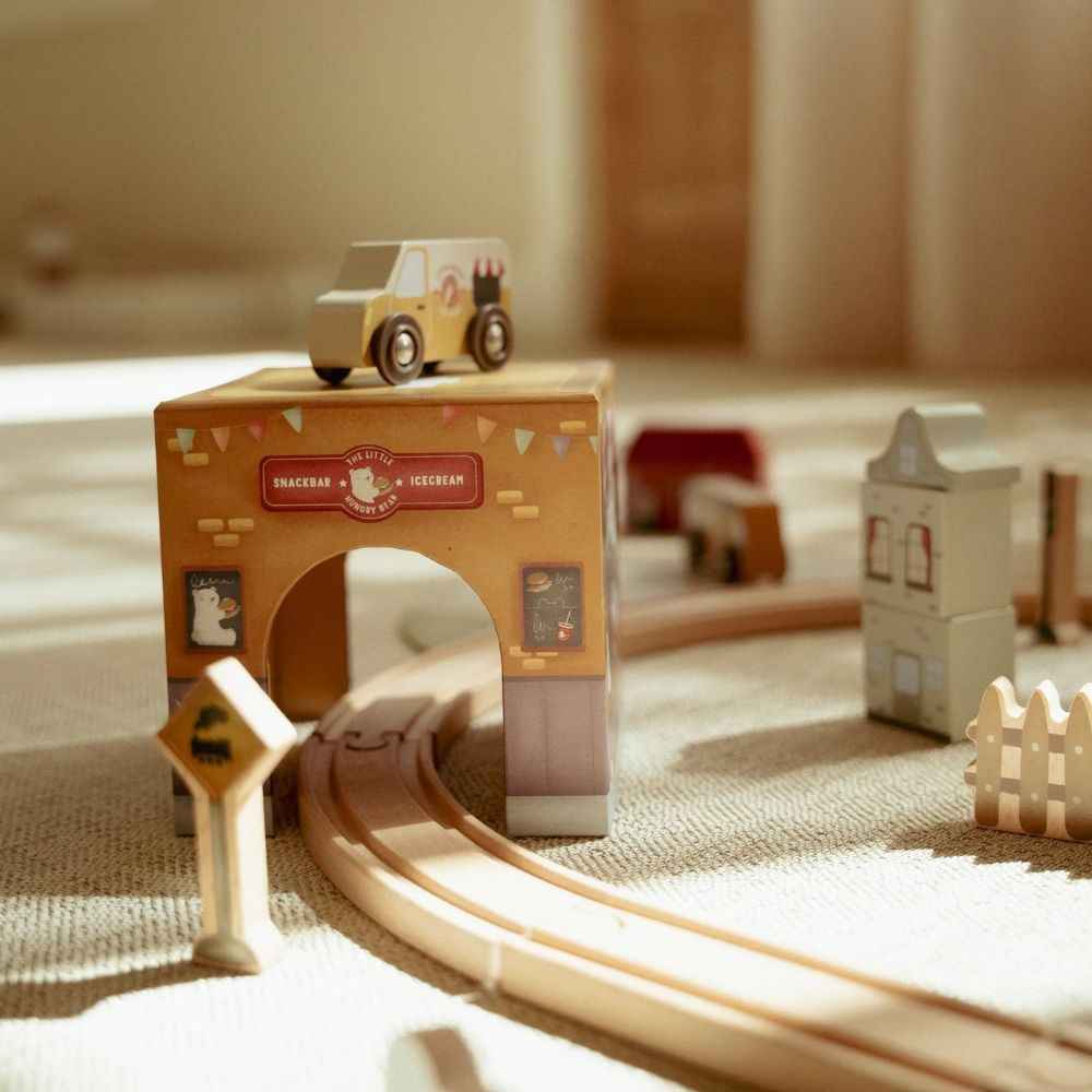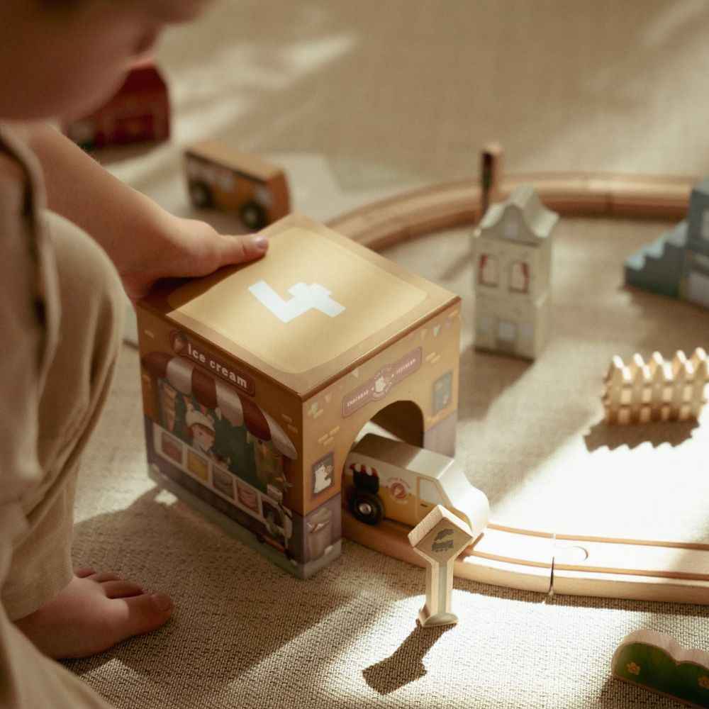 - Möglichkeit zum Bauen von Türmen und Spielen auf den Schienen der XL-Eisenbahn von Little Dutch