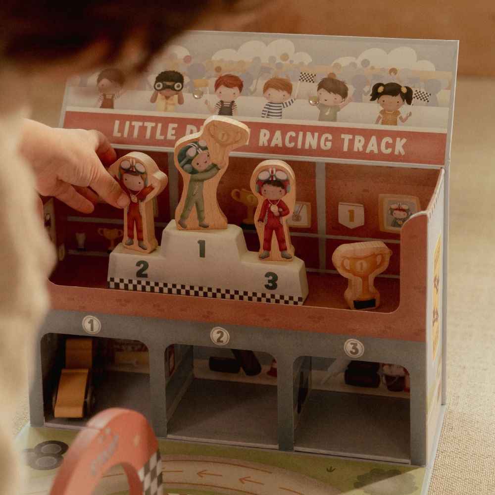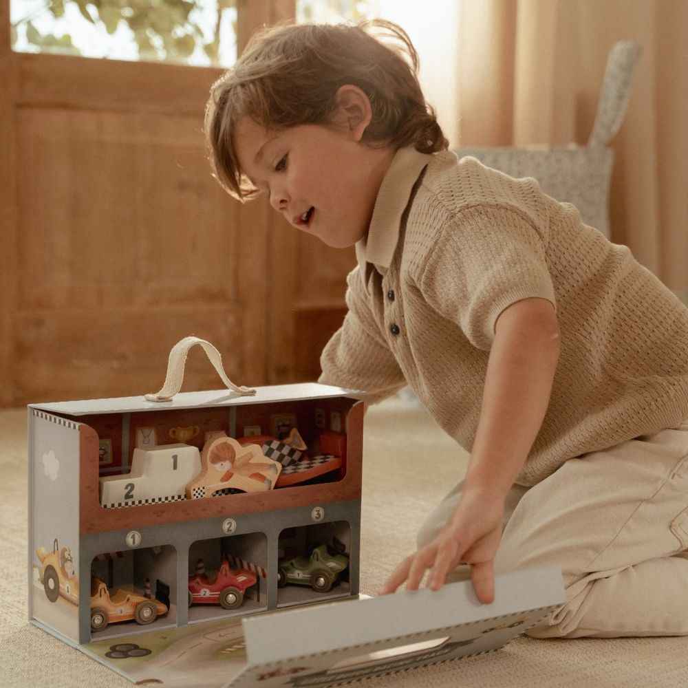 Bereit für das große Rennen? Diese einzigartige Rennbahn von Little Dutch ist ein großartiges Angebot für kleine Motorsportfans. Das Set ist in einem praktischen Koffer verpackt, sodass Sie es leicht mit in den Kindergarten, in den Urlaub oder zu Freunden mitnehmen können. Nach dem Auspacken entdeckt Ihr Kind eine Rennbahn aus dickem Karton, bunte Autos und Holzaccessoires , die das Spiel noch realistischer machen. Nach dem Rennen lassen sich alle Teile problemlos wieder in den Koffer verstauen – Ordnung garantiert!